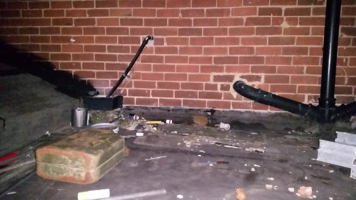 Take the basin waste over to the right and straight into the vent pipe; remove the existing hopper and drop the bath waste down through the hole and then along to the stack below the roof!