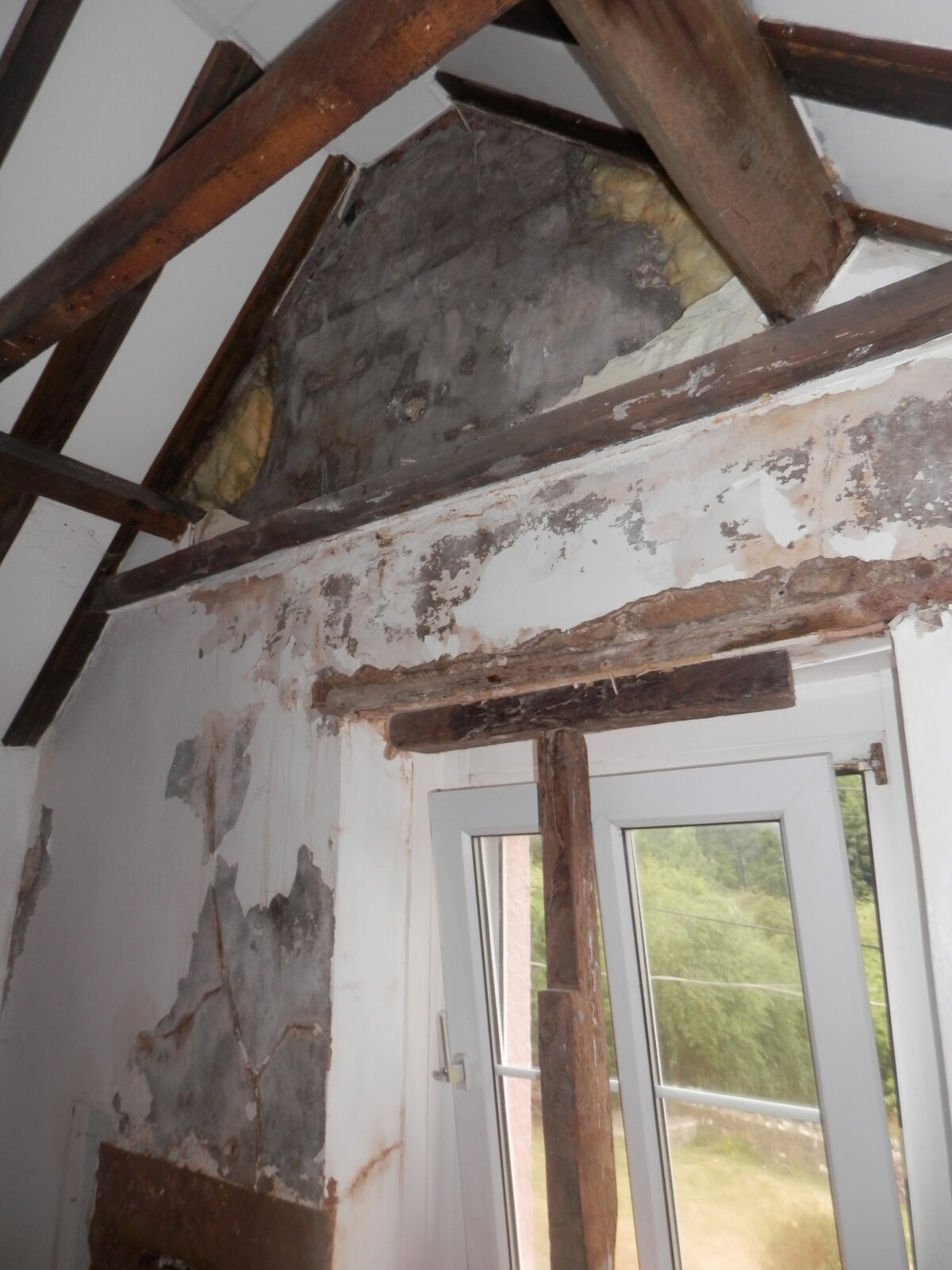 On trying to locate the source of the problem we removed sheets of kingspan that had been screwed to the wall above the beam, the wall was dripping wet behind probably from the damp not being able to evaporate but possibly also from condensation.