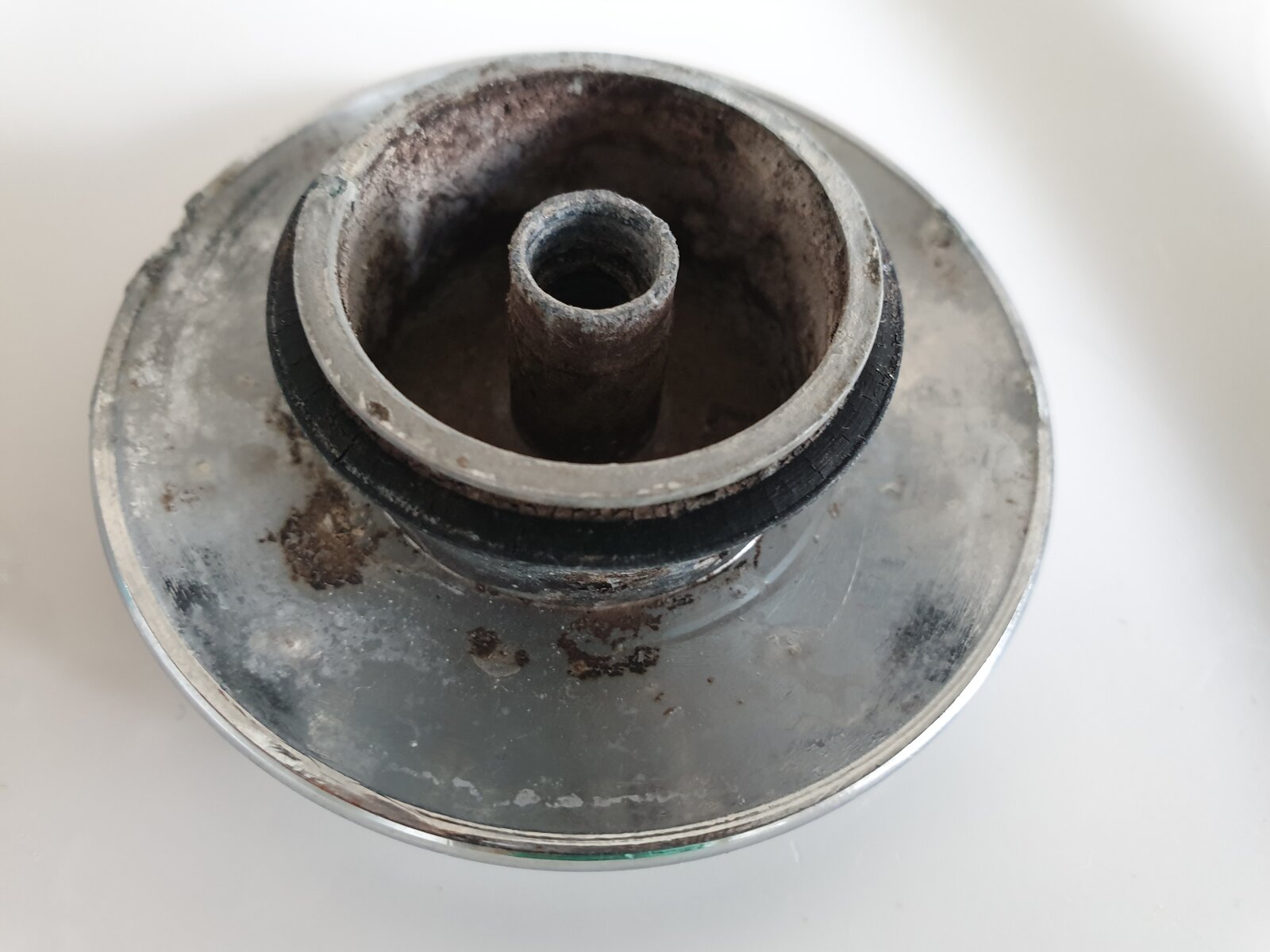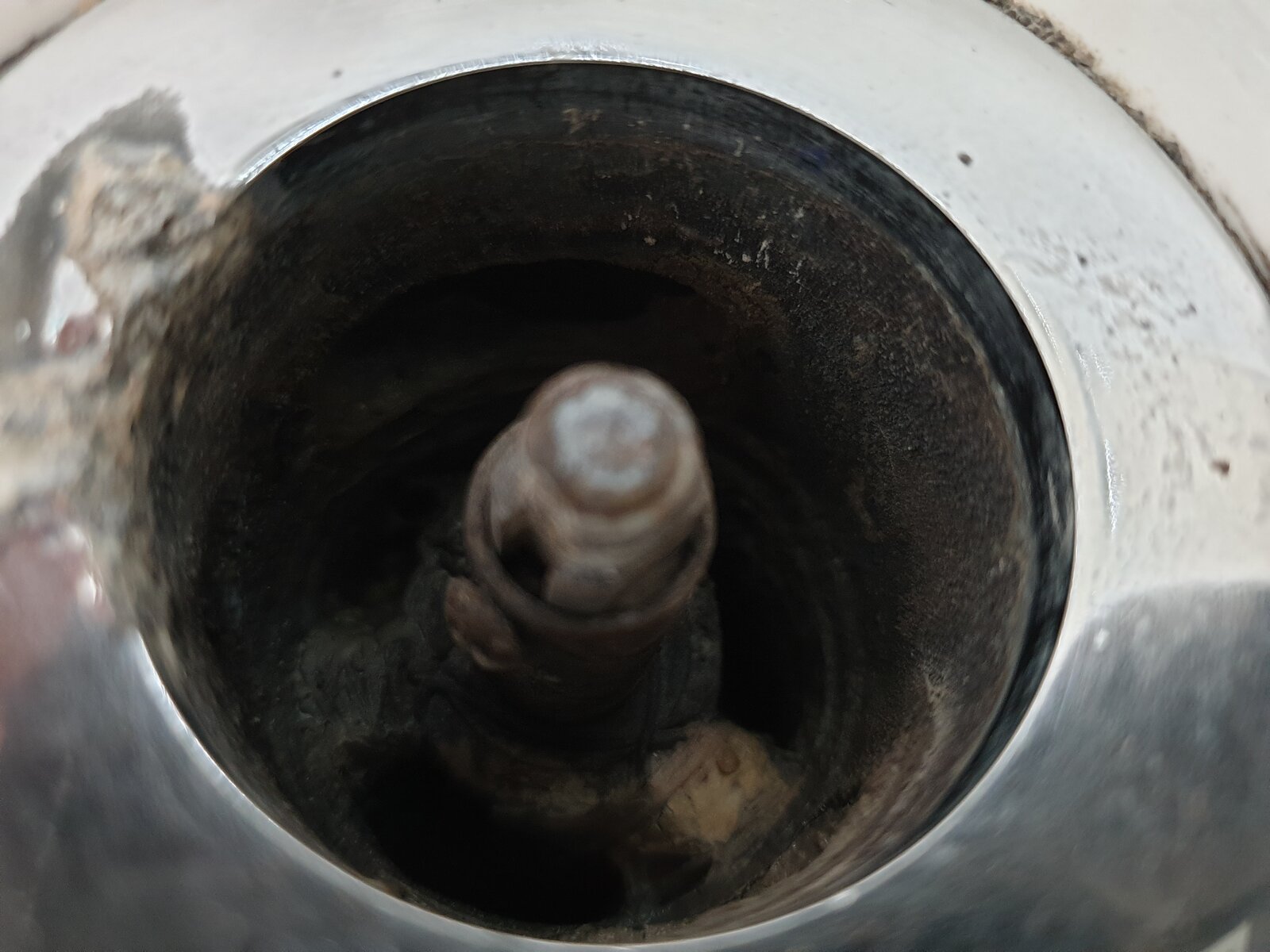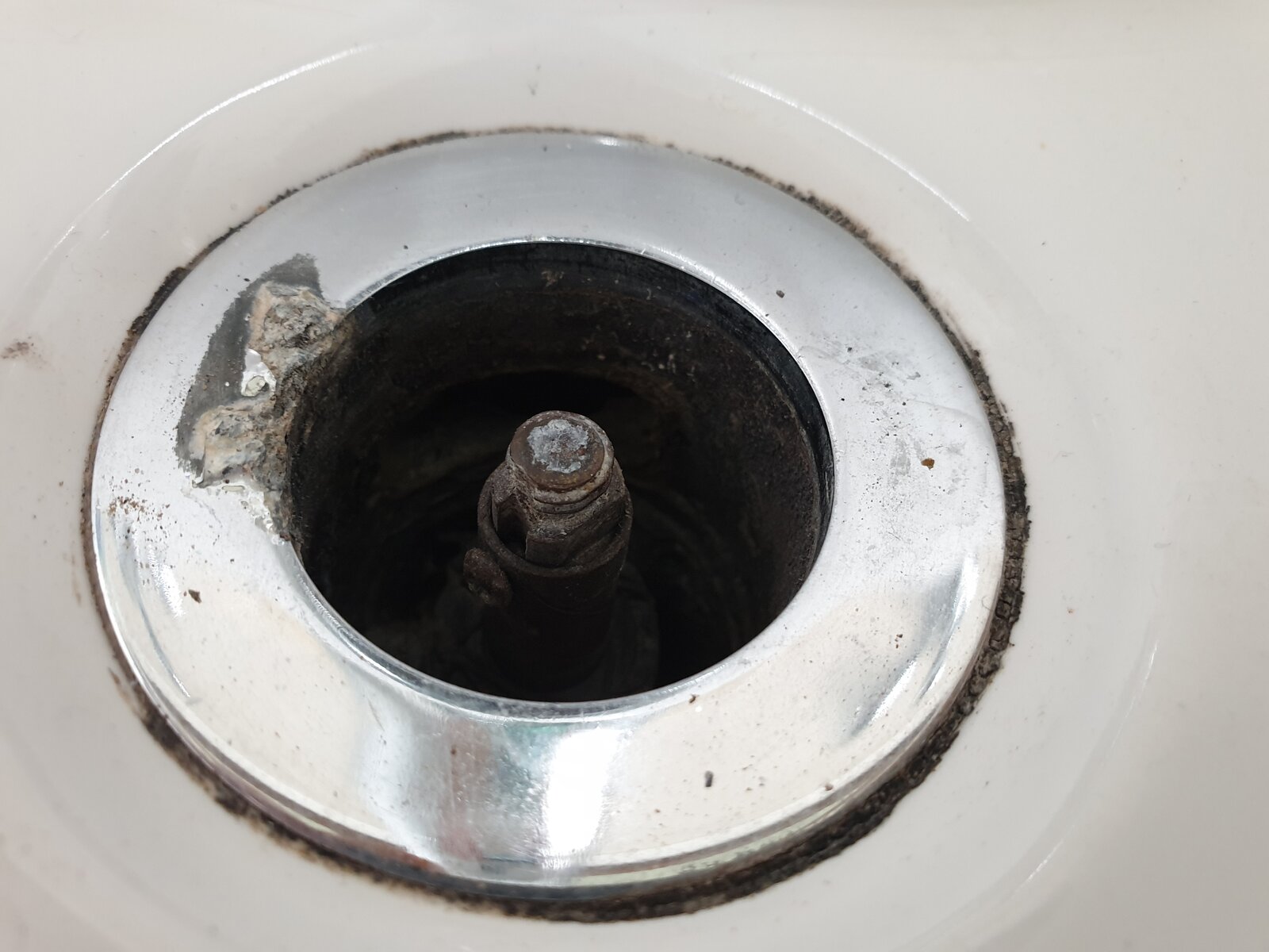 After long term use, the click clack wastes can sometimes jam in the plug. Looks like that's what's happened and the tennant has snapped it to get it open. Shame as they usually just unscrew.