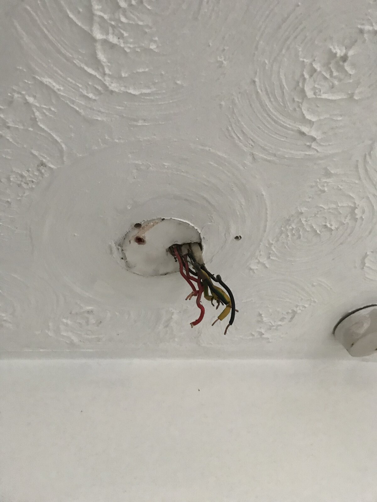 When there are cables popping through the ceiling in this manner and you need to drill some holes for the light fitting, how do you determine where to drill them and not poke a hole into the cables.