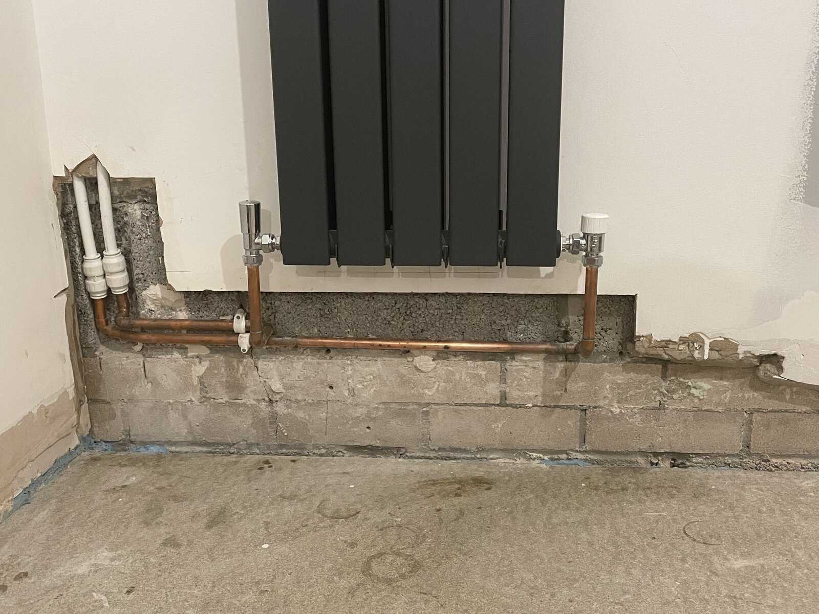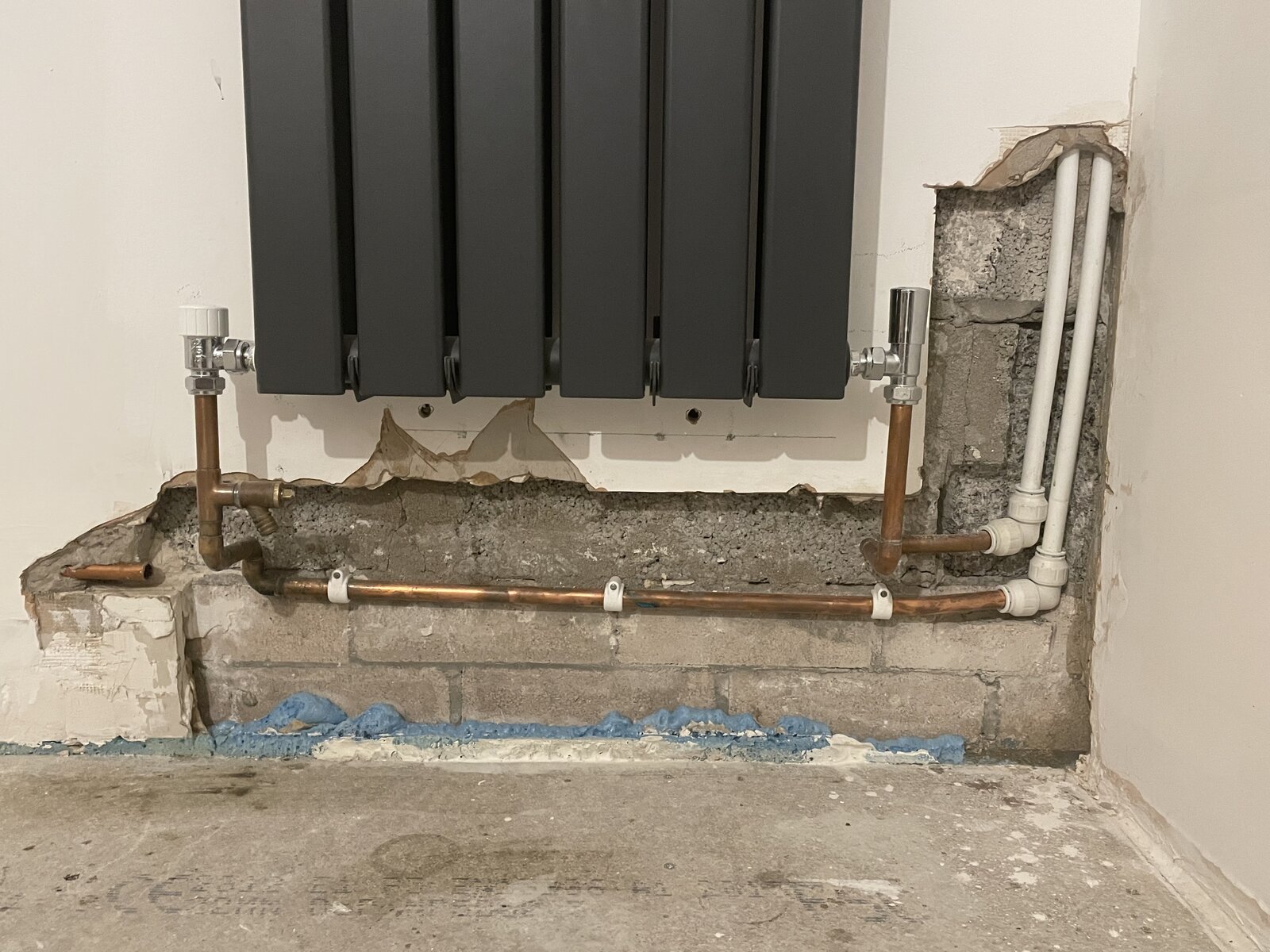 I just had a couple of radiators moved and pipework chased into the block a bit. A section of the dot and dabbed plasterboard has been removed. I’m not sure how to go about repairing this - I was thinking, wrap the pipes in something and then dot and dab over the whole area with as few pieces of plasterboard as I can manage. Not sure how to get the pipes thru the board.