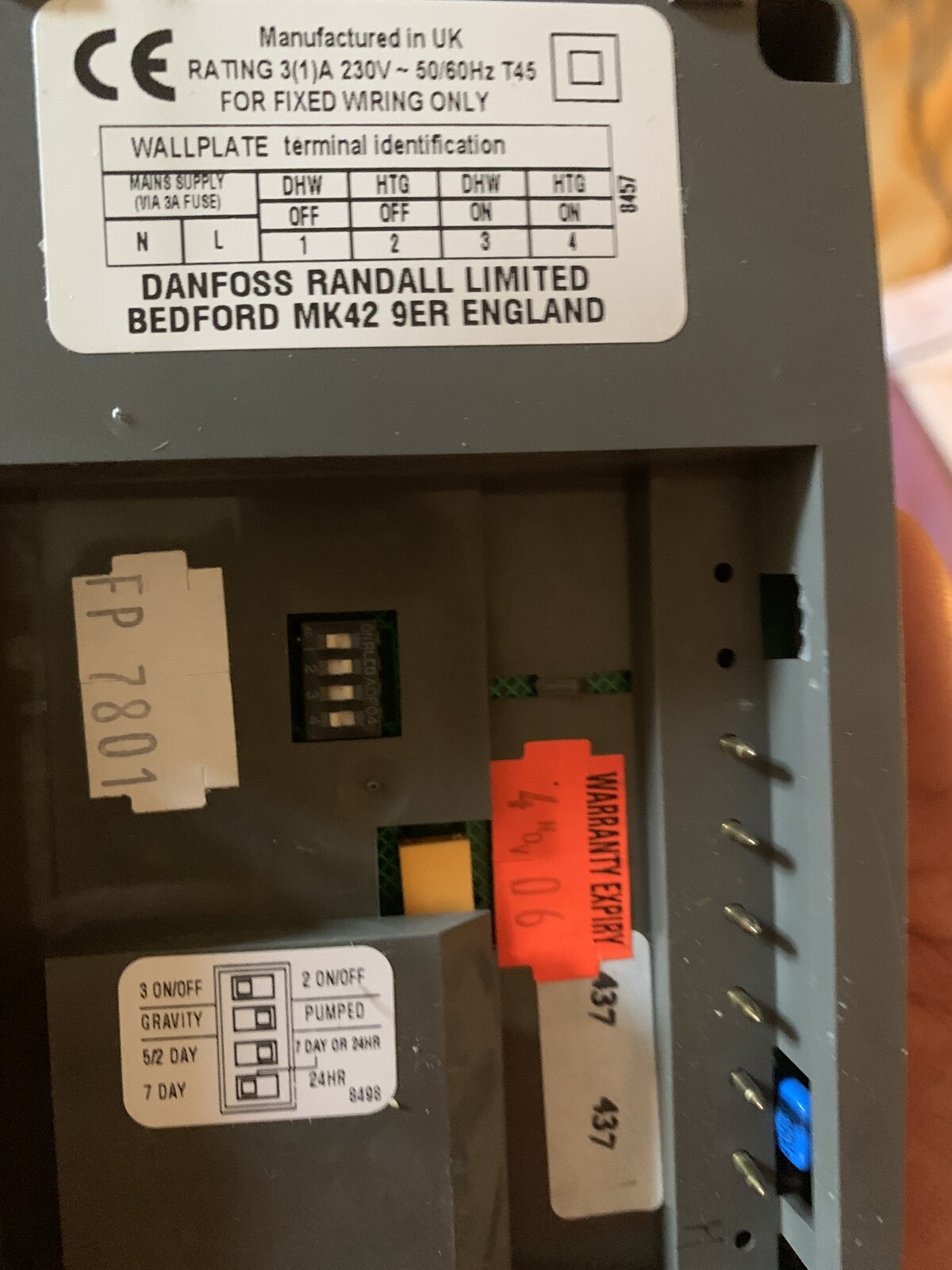 My wife accidentally pulled off one of the cable connecting to the Danfoss programmer, and now the central heating does not turn on (hot water still working). Now I'm not sure how to reconnect this wire back on. Thanks for your help.