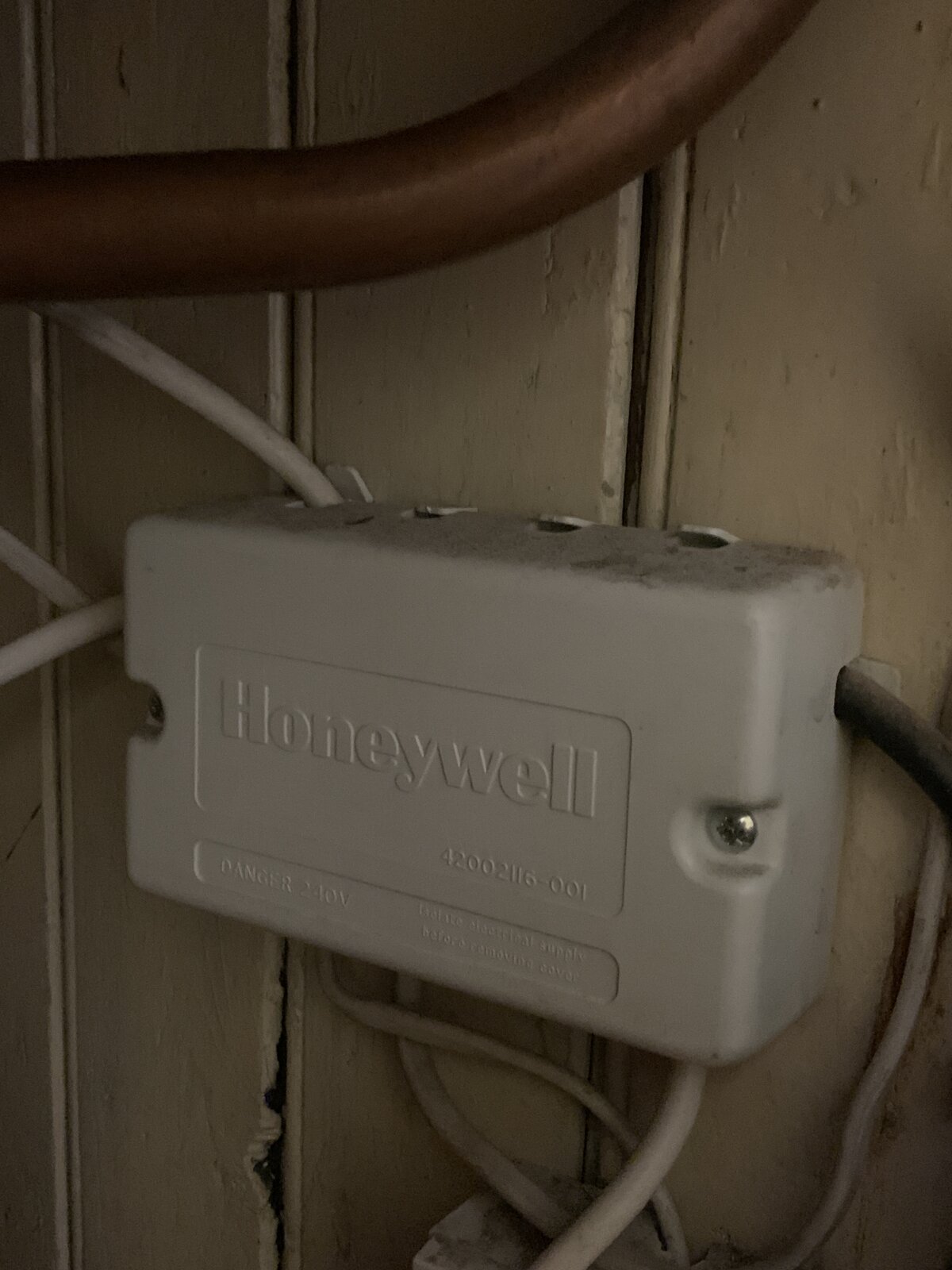 If you can post a picture of the internals of the white Honeywell box, we may be able to see where the cable terminates.