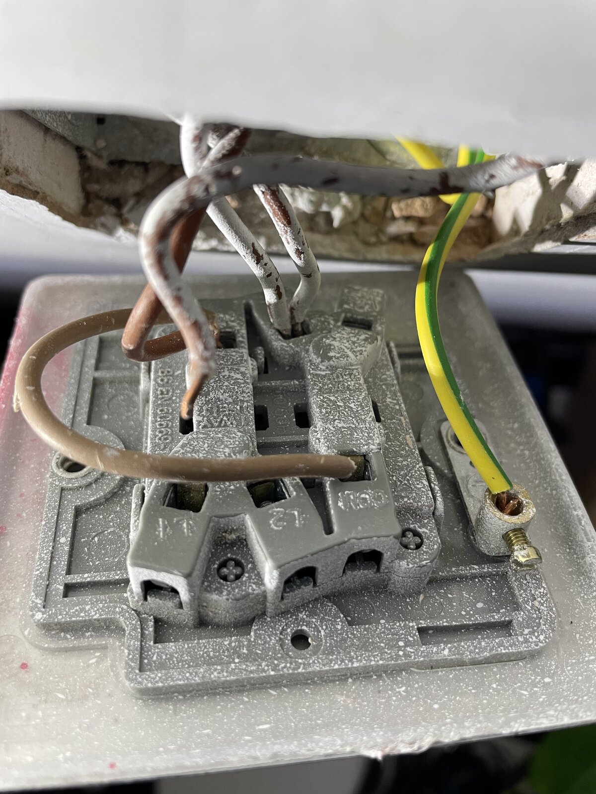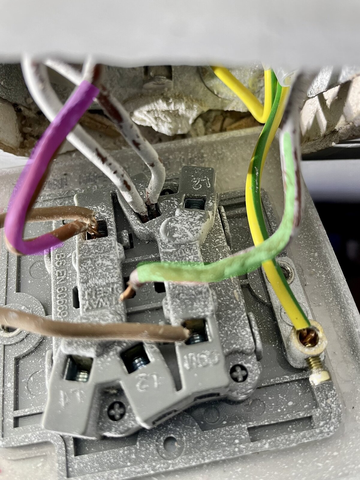 I opened up this double switch to add an earth wire from backbox to faceplate, and a wire came loose , the one I’ve highlighted in pink. I thought it went in the common at top left so I put it back there, but when I turned the electric back on the circuit breaker was triggered. Then when I took the faceplate off again another wire came loose, the one highlighted green. i think it goes into L1 at the bottom left, but now I’m not so sure.