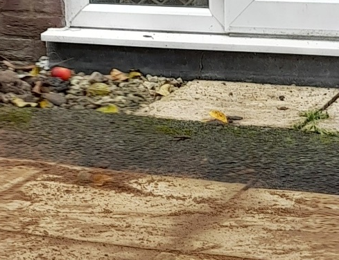 There was a sloping drive to a garage, garage made into a flat, and outside the patio door I have built up the ground so I can have a level area for seats etc. This has left me with a little of the slope left
