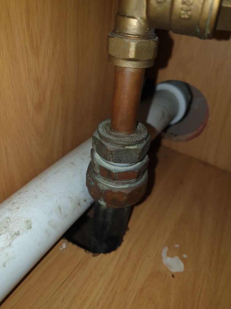 I've an idea of how I want to layout the new pipework (see attached picture) but I'm stuck on what to do with the incoming water main which is currently connected to 15 mm copper pipe and then to a 15 mm stopcock. The water main pipe is black and plastic and is 27 mm in diameter. The question is how do I connect this black water main pipe to 22 mm copper pipe? I've attached a picture of the existing connection.
