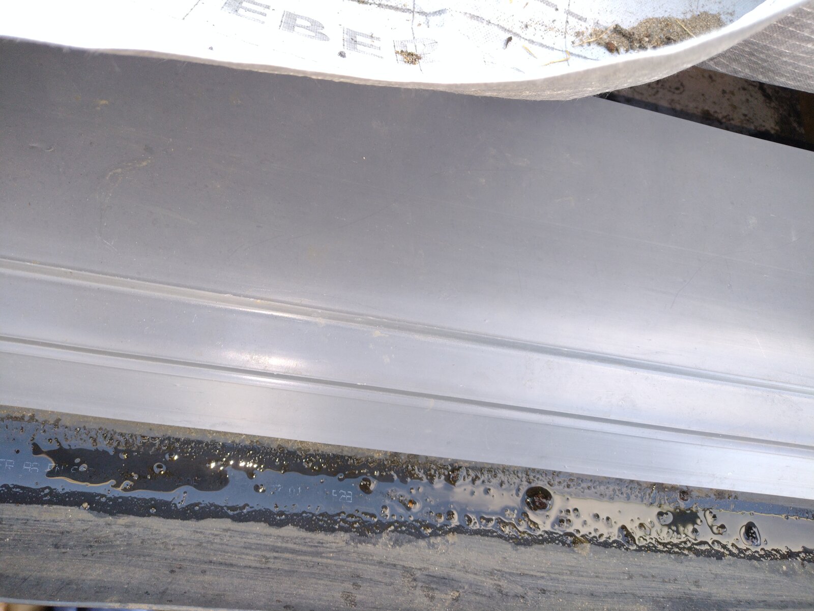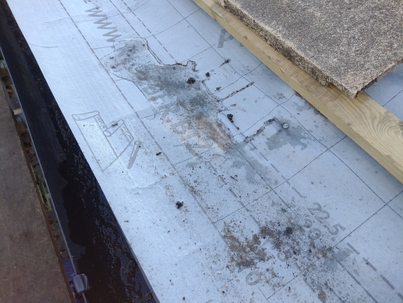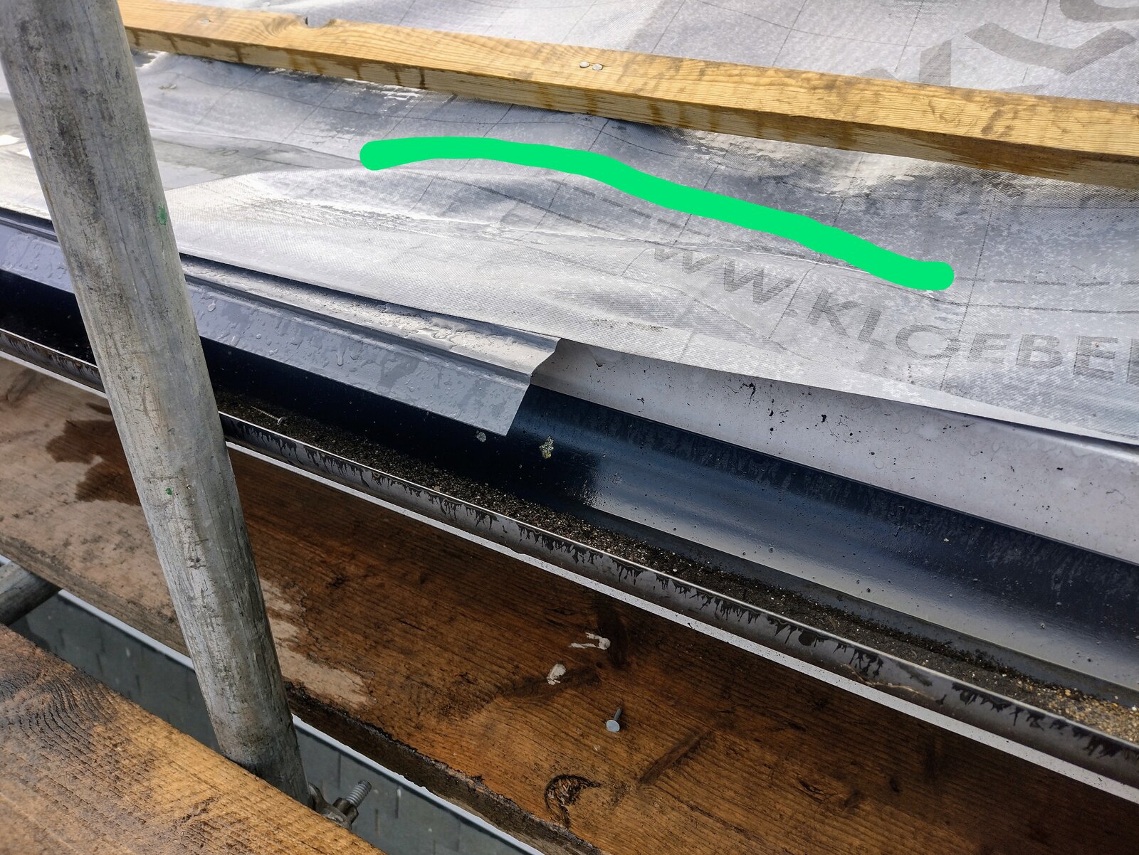 I have a problem with water pooling on the breathable membrane (marked on pic) and not flowing into the eaves support tray and into the gutter