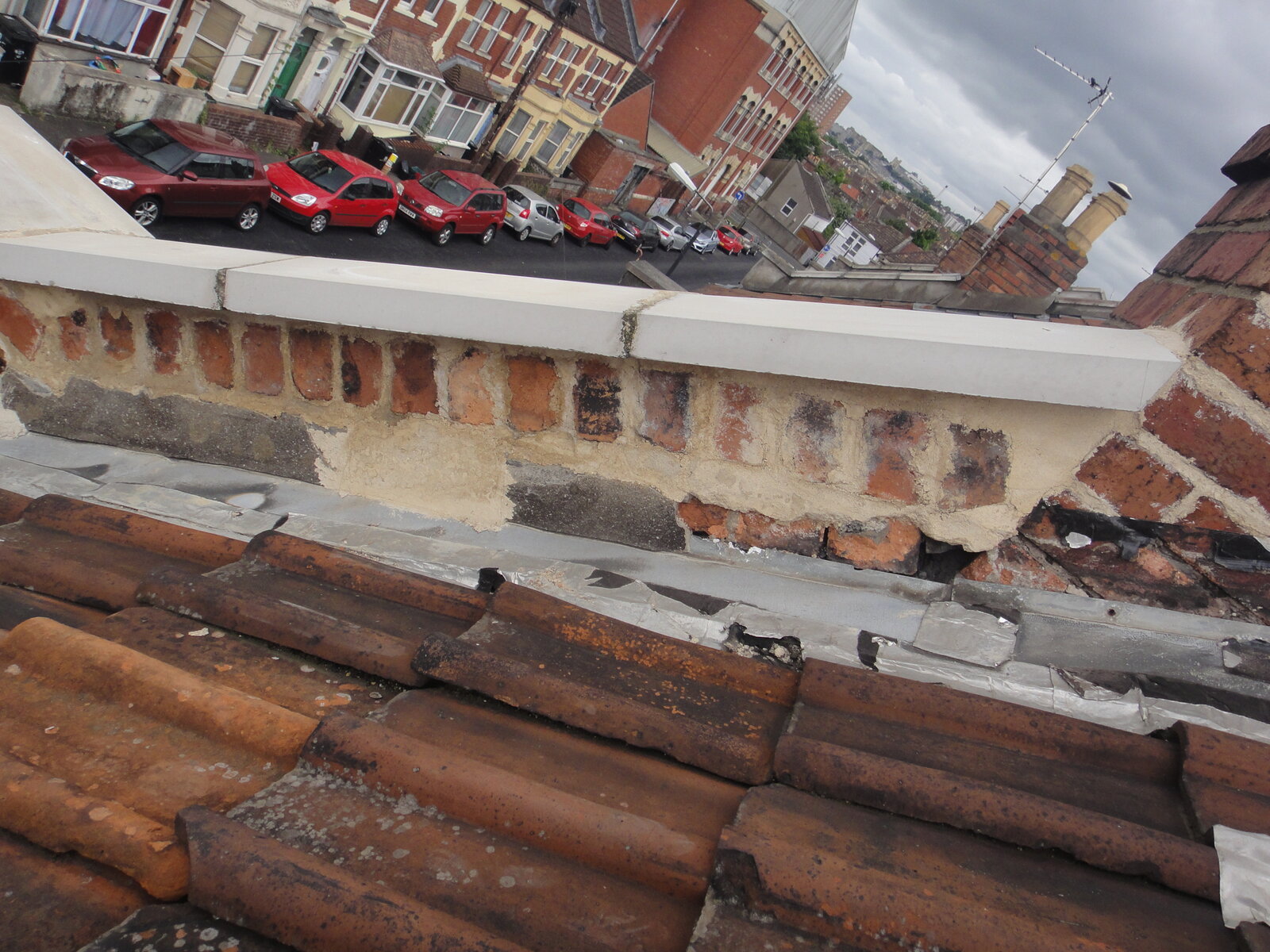 Any ideas? Not sure the coping stone are securely fixed enough for hammering in lead wedges for the flashing, and would prefer not to angle grind a channel in for a run of lead.