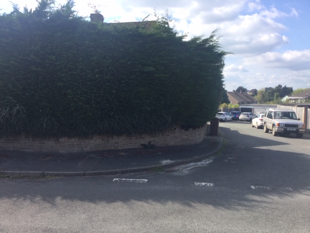 In terms of visibility, there is one driveway on the hedge side of the road (our neighbours) which he doesn't tend to use. The attached pics should help you see what's what.