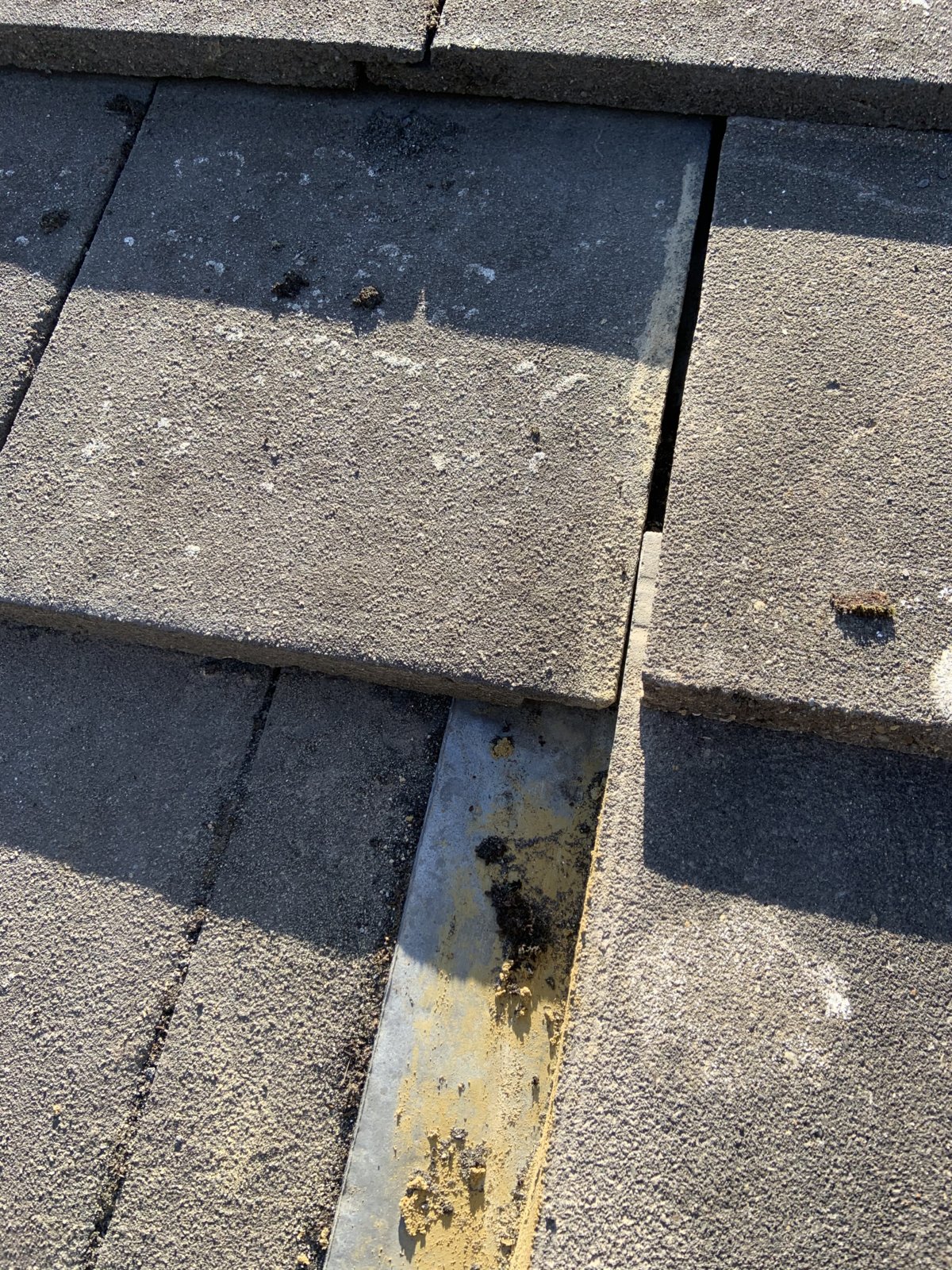 As in the picture, the two tiles (at the upper row of the lead flashing) are not even. How to cover the gap to prevent leaking? Thanks.