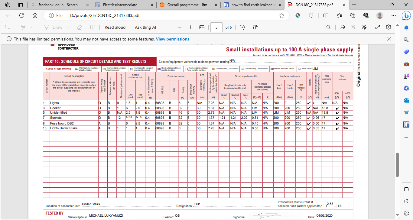 In view of that picture of the consumer unit, (a bit different than the description and certificate) I would hazard a guess that you might have what we call a borrowed neutral on the stair landing light circuit.