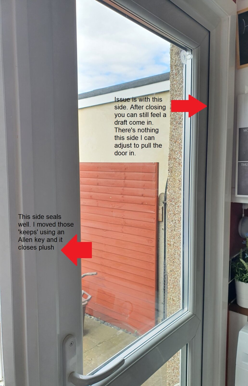 Hi, I have a upvc door which opens into my backyard. There is a gap between the black seal and the door, when the door is closed. On a windy day/night, I can feel the cold air coming through this gap and the entire room gets cold. Is there any way I can fix this?