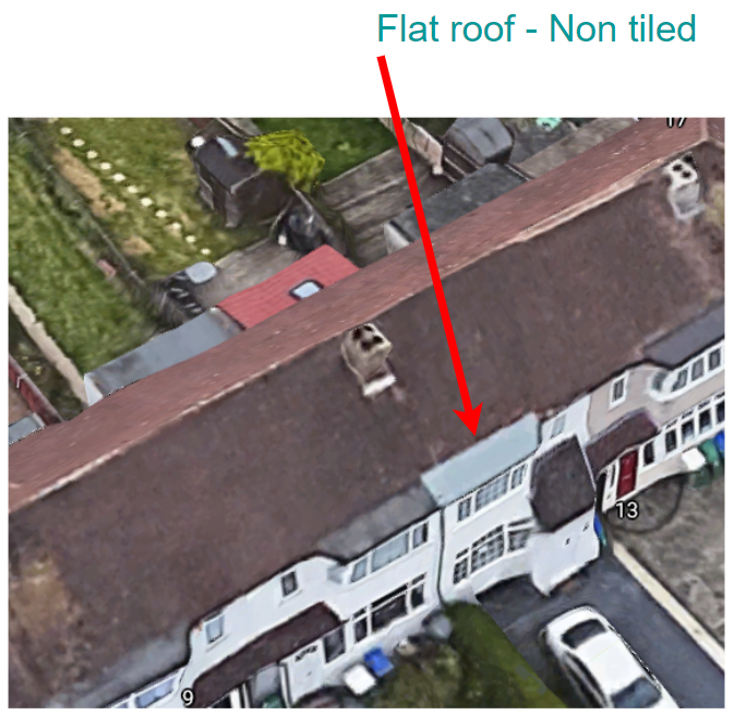 On the first floor of my terraced house, the front part protrudes from the front facade and instead of tiles above, it has a flat roof. Taken this image from Google Maps.