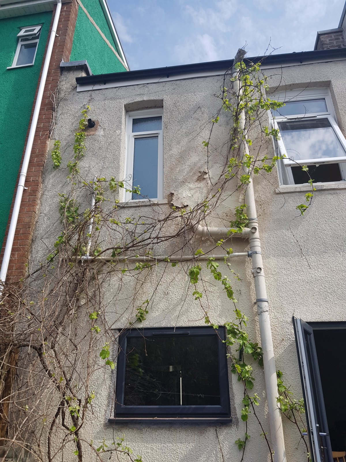 You can see how its been patched up before and has a mix of pebble dash and flat, which isn't great, but I'm not too fussed about the back of the house being perfect.