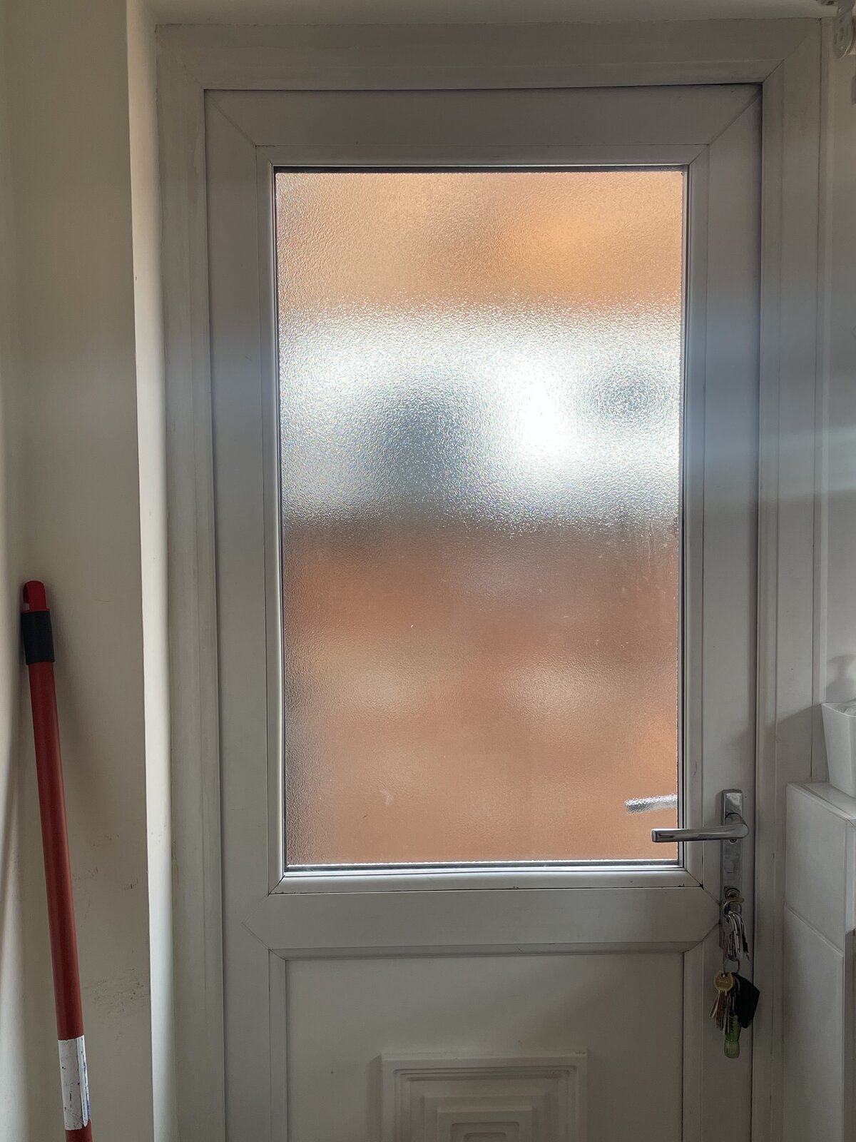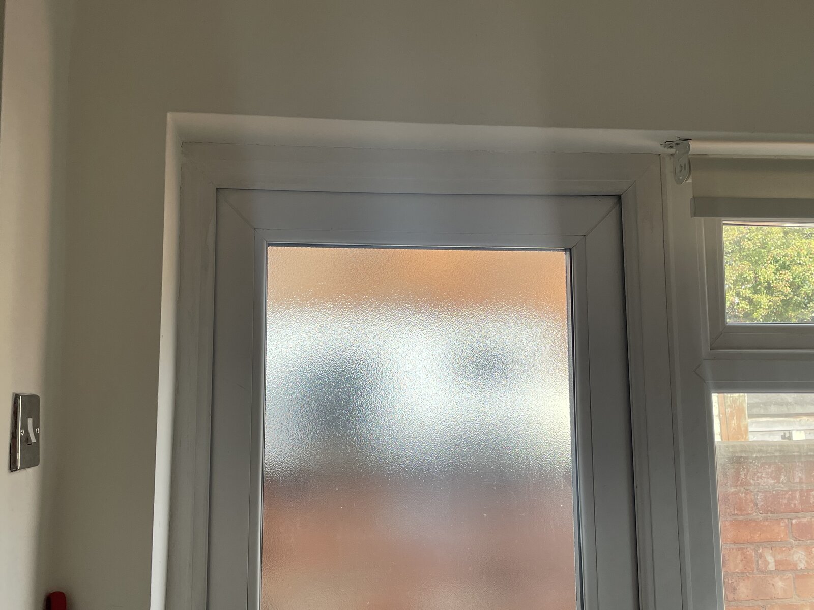 Hi, this door is very cold. How would I hang a curtain across the door? It’s awkward due to the window next to it meaning I can’t put a curtain rod across.