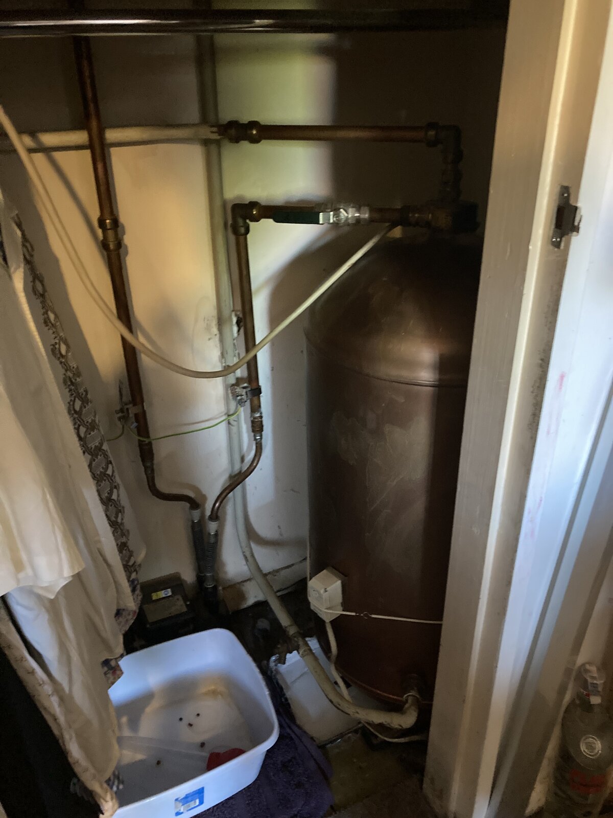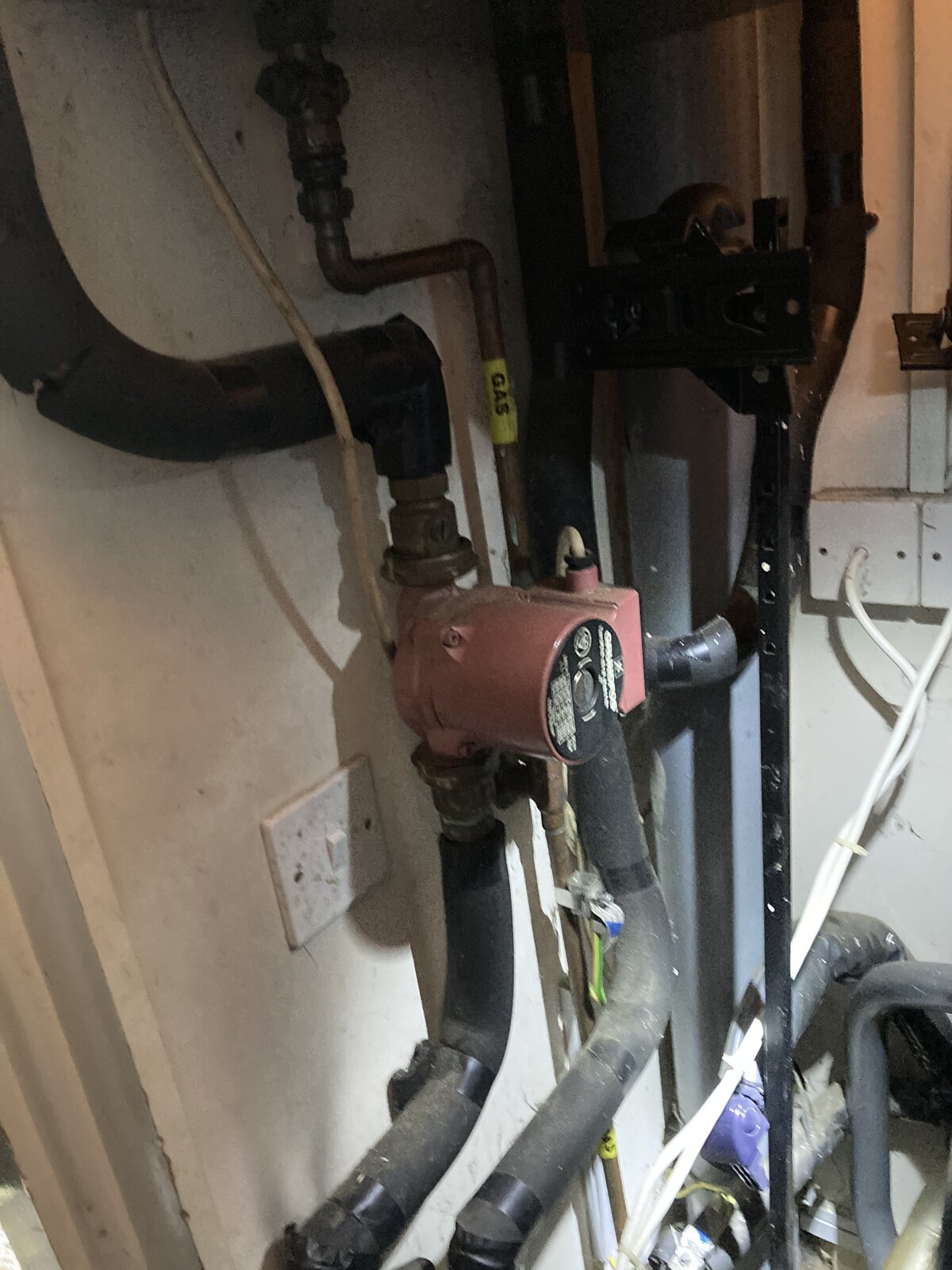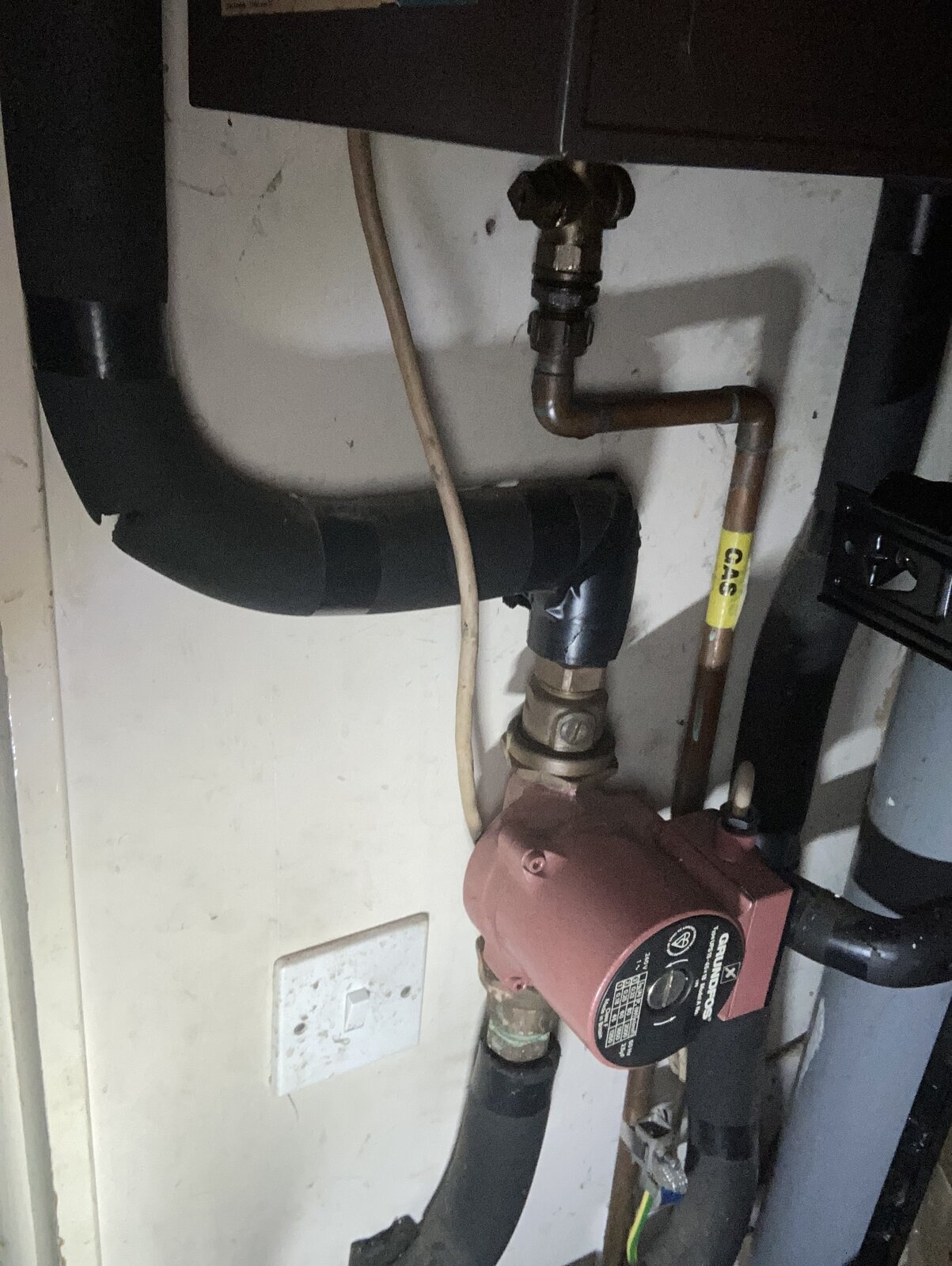 Edit - to upload pics of cylinder and pump at the boiler. The feed and return pipes are in the rear corner of the cupboard but are 22mm