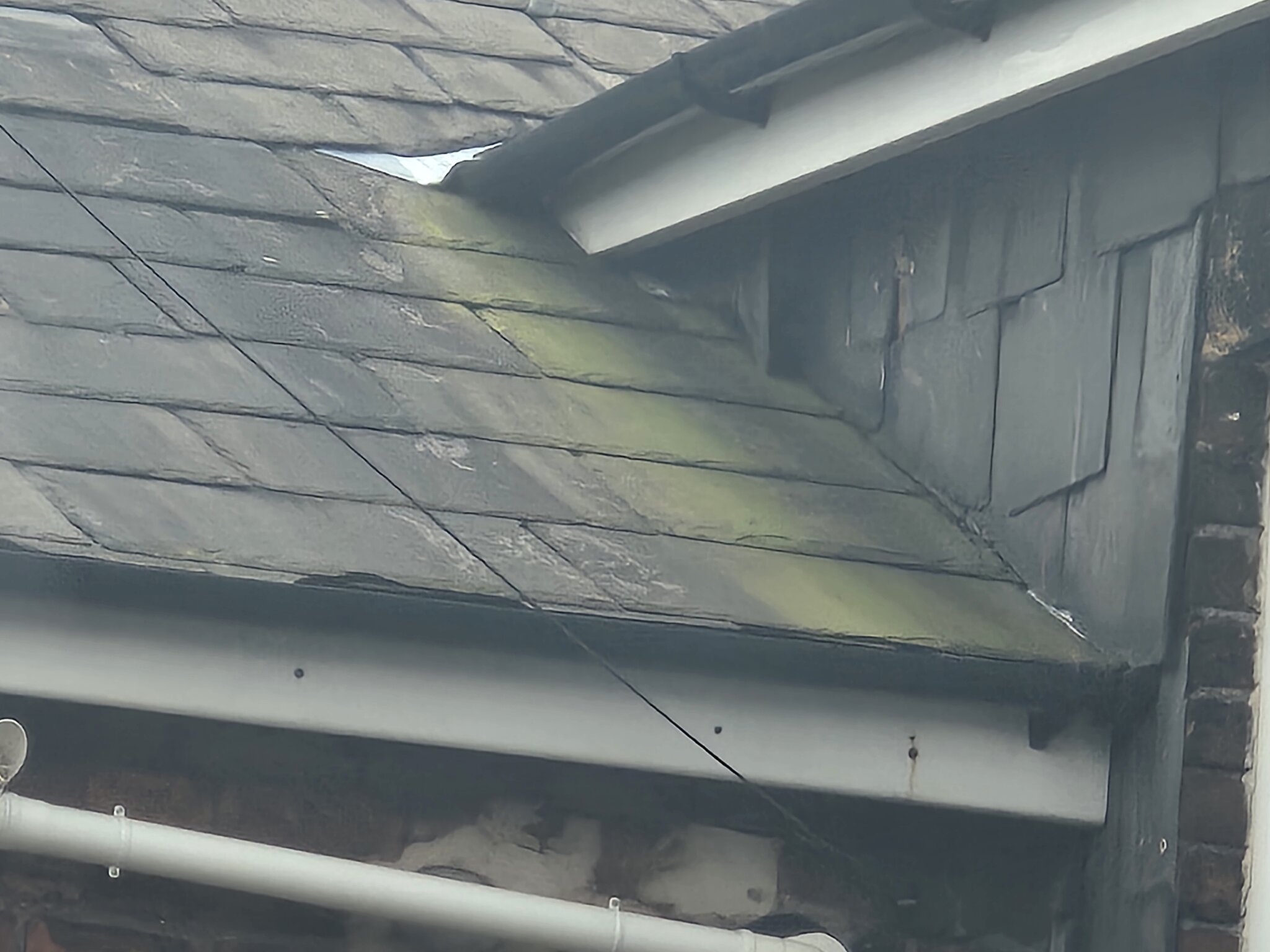 Water isn't running over the gutter but it has me suffering if the way the main roof gutter runs into the valley is causing water to stop into that wall somehow.