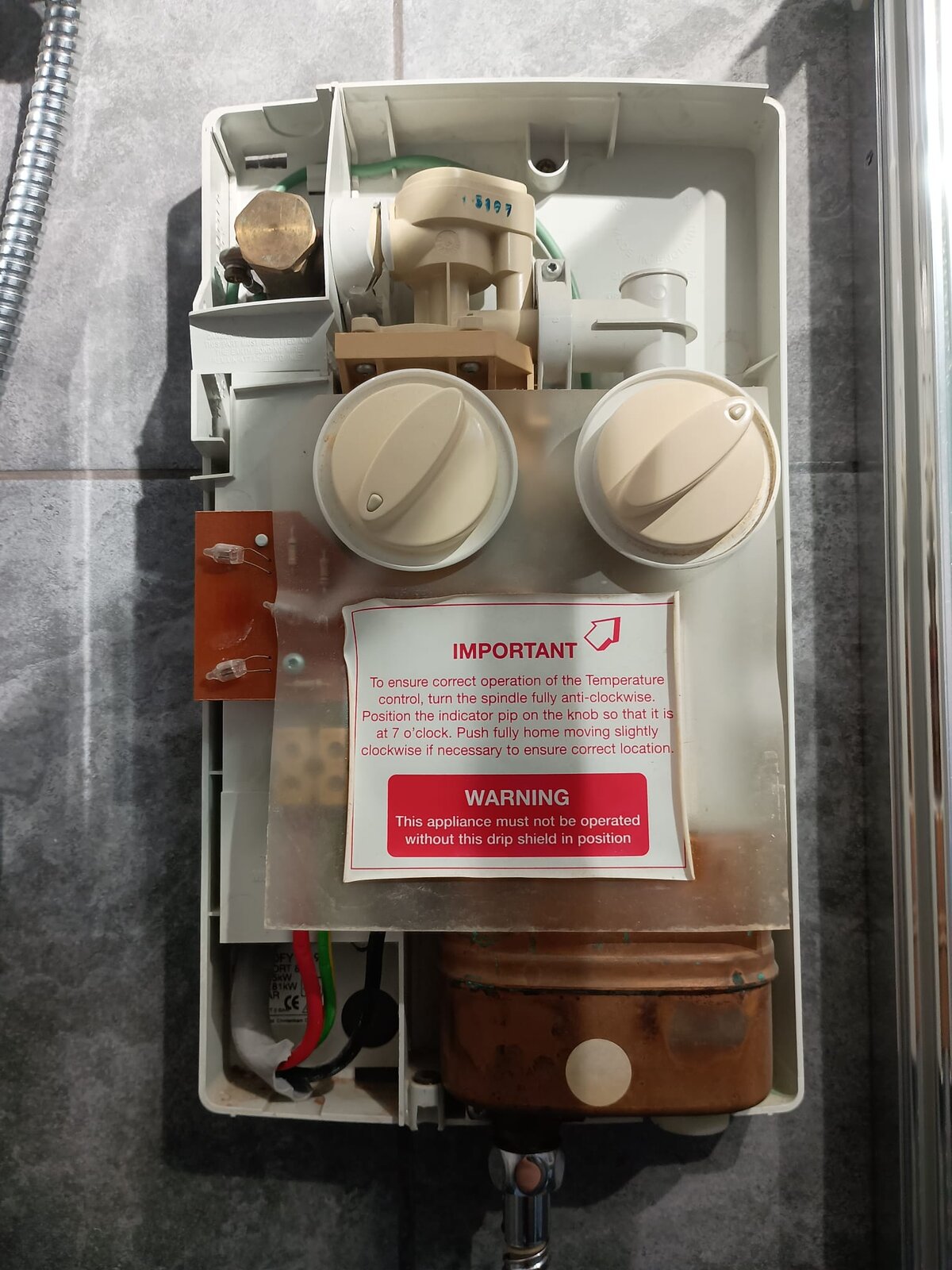 Hi we have a very old seldom used Mira 7.5kw electric shower, (we use our other mains shower instead) this morning the shower started leaking out the box, turned the water and electric supply off and took cover off (see pictures) the bracket has cracked and water leaking from the pipe joint (arrowed) with the shower being over 25yrs old we have arranged to get it replaced but with the bank hols etc can't get done until Tuesday. We tried turning water back on briefly (to flush toilet, run washing up etc) the shower then started leaking heavily. We can't place the isolator valve, the shower seems to be fed by a pipe in the airing cupboard but there doesn't seem to be a valve on it. So we have had to keep our water off completely- has anyone any ideas about a temporary solution so we can turn the water back on please?