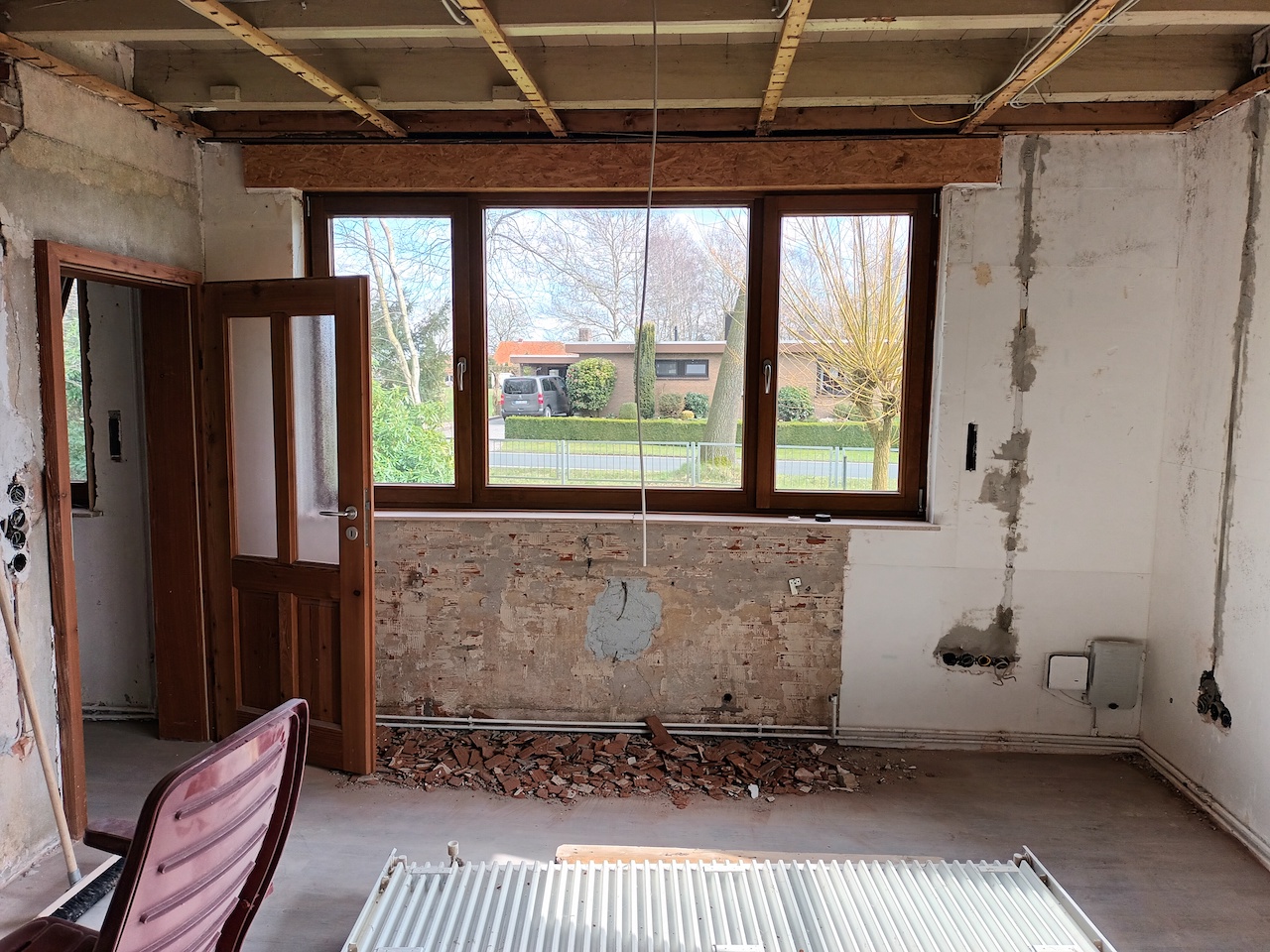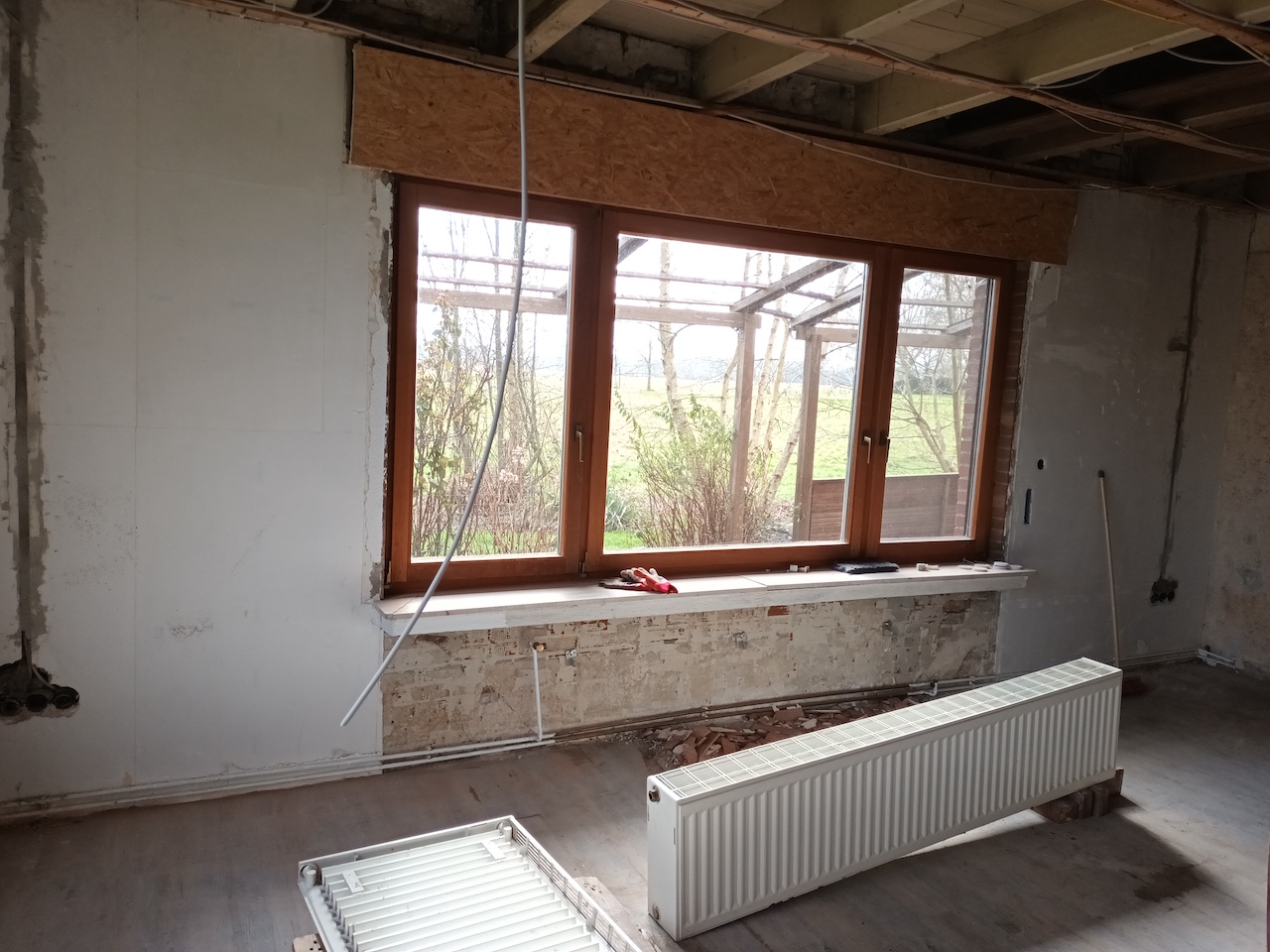 We removed the "brick" tiles behind these radiators and want to make the wall good and wallpaper before putting the radiators back. In a couple of areas the plaster has blown from the brick work. Mostly however the plaster is still good.