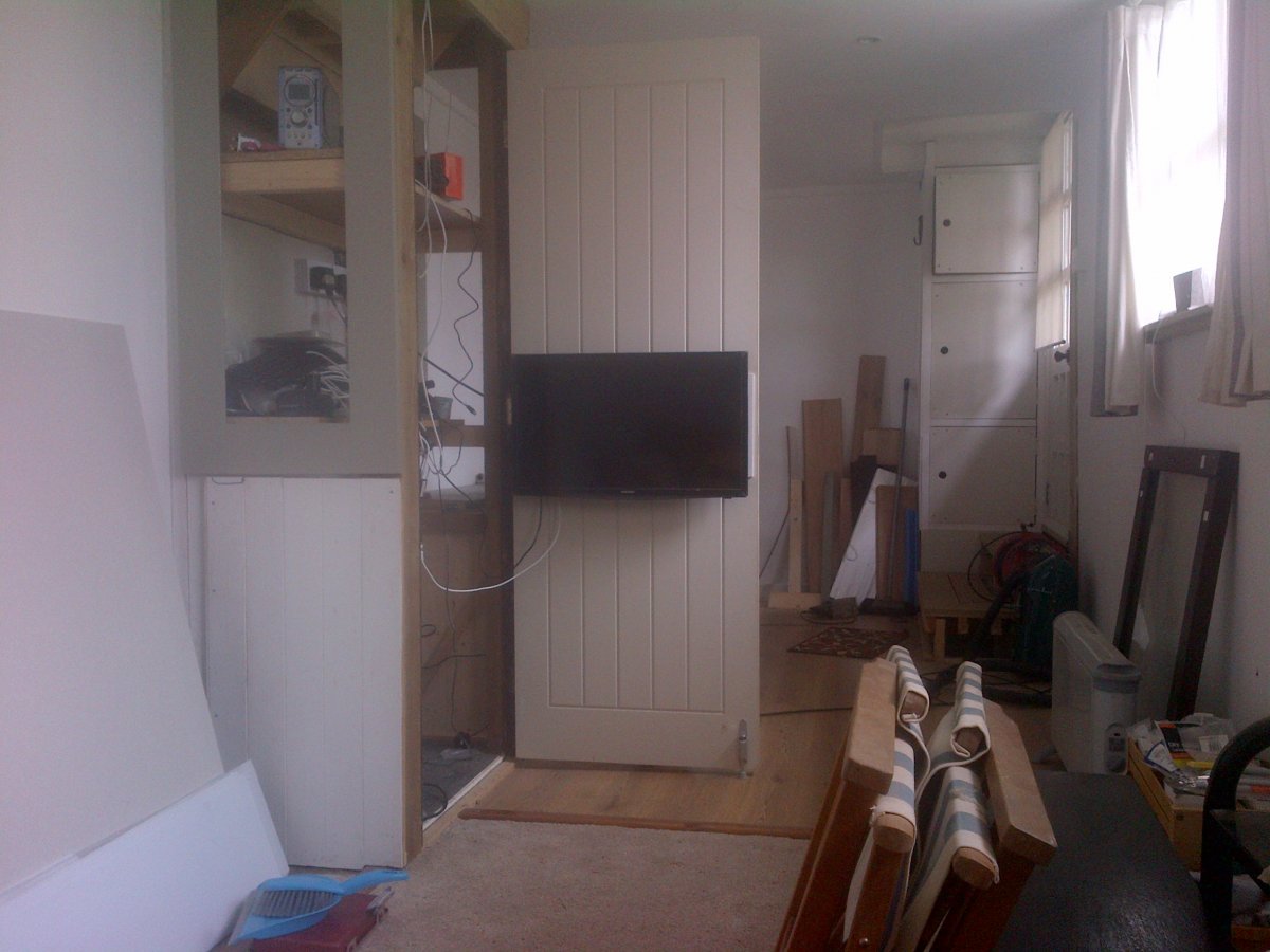 I have recently built a summerhouse and put a TV behind a cupboard door (for security and space reasons). At the moment I have to open it manually which isn't really a problem but I like the idea of having it on a remote control. I was thinking of purchasing an actuator arm and some of those remote controlled extension leads/socket things. Unless someone had a better idea on how I can go about doing this?