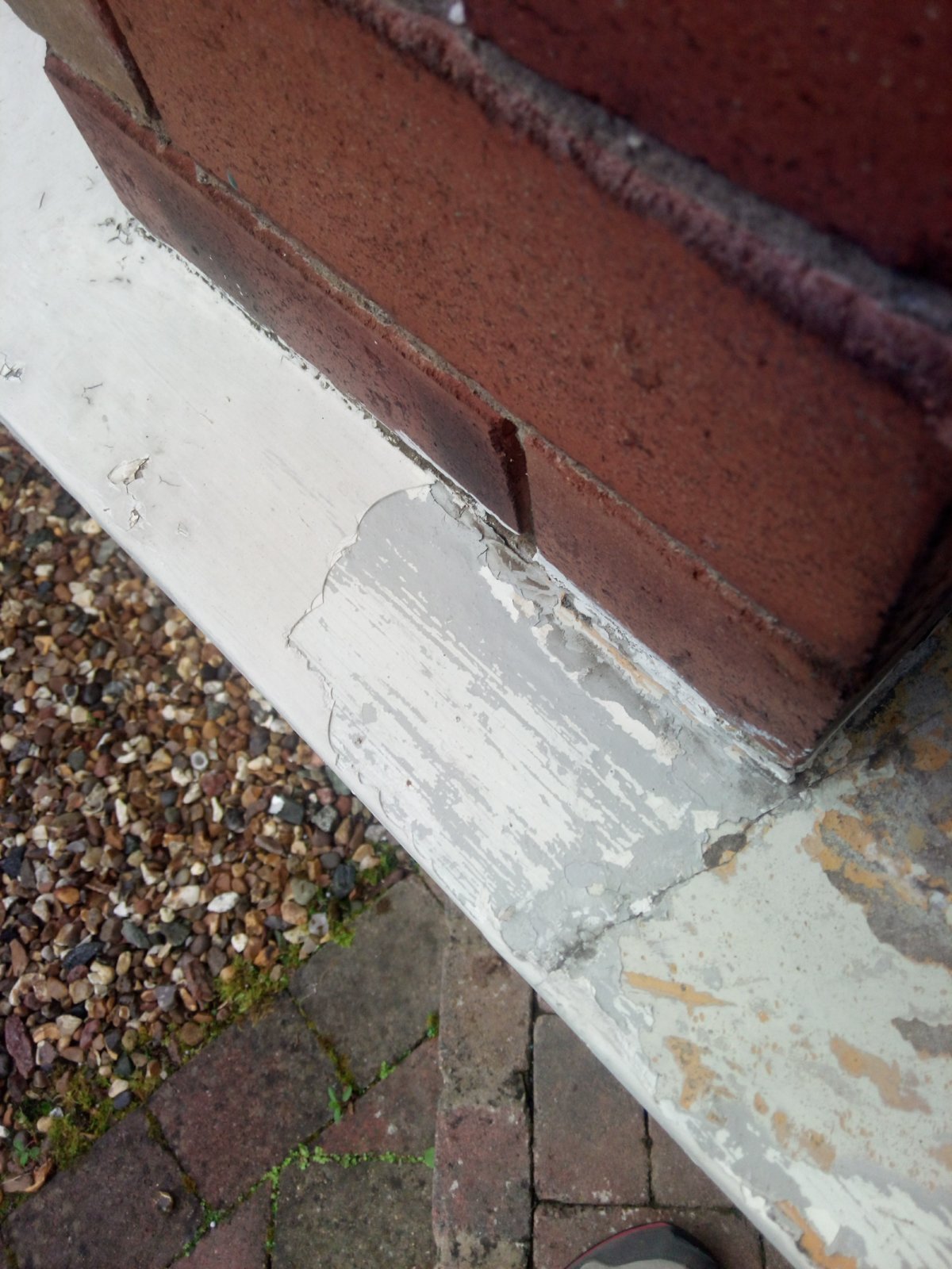 I'd appreciate some advice on painting a masonry sill. The existing paint was pretty flaky to I started scraping and in parts managed to get right down to the bare masonry.