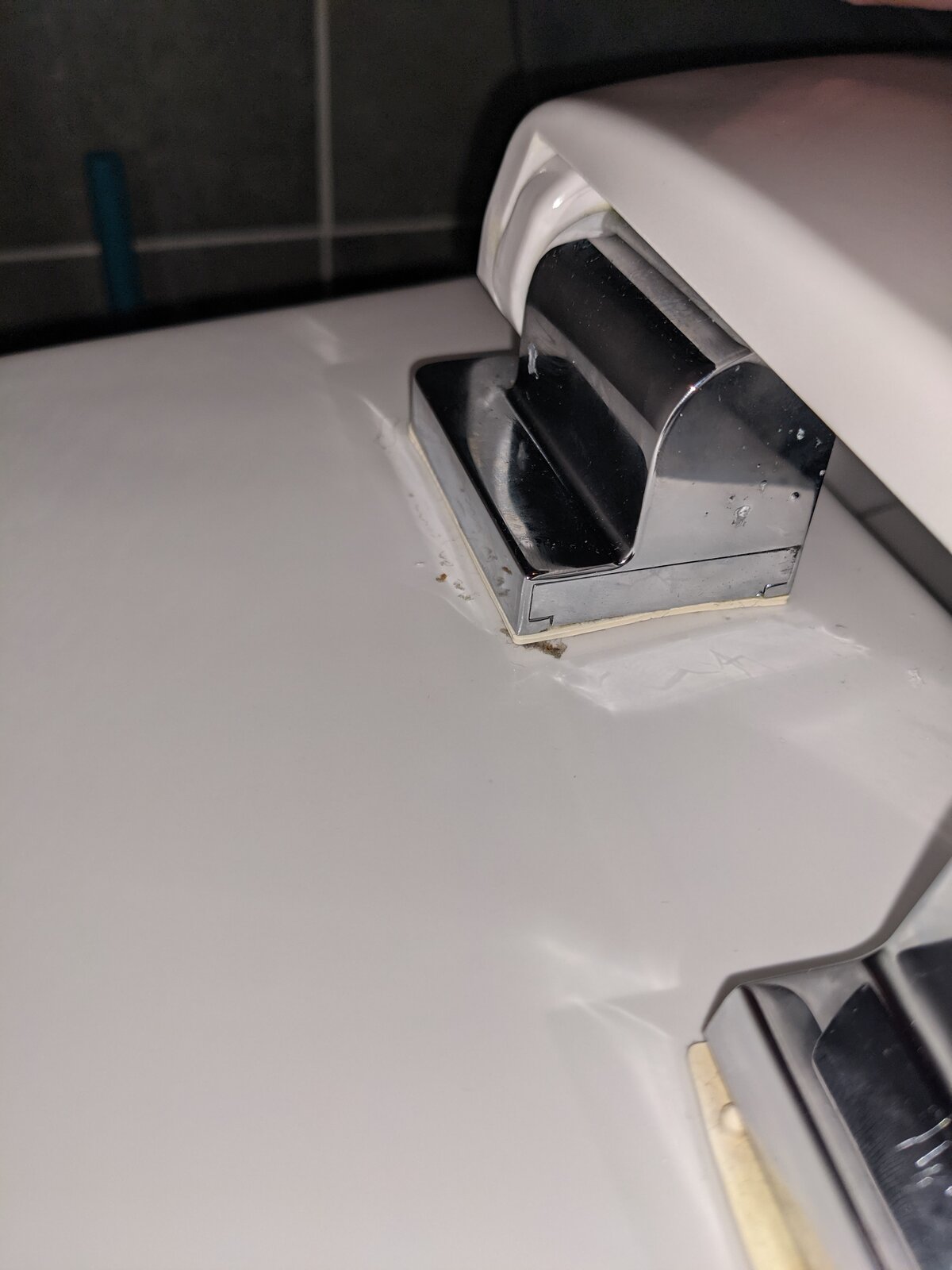 1. Have you checked for any grub screws in the rear of the fixing blocks securing the chrome caps to the blocks mounted to the pan above the white rubber seals?