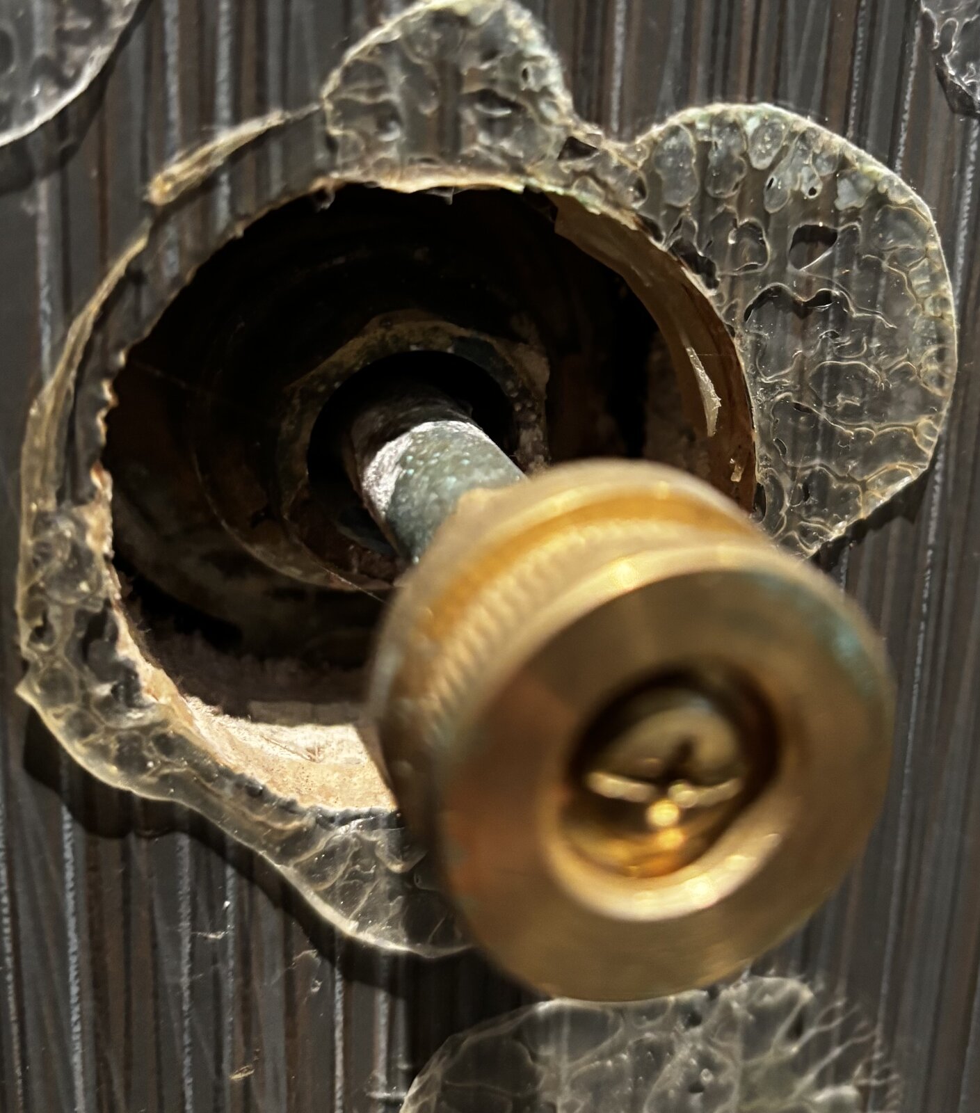 Can you remove that knurled brass wheel- with the centre screw - to reveal the larger hexagon behind?