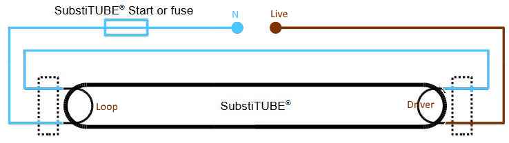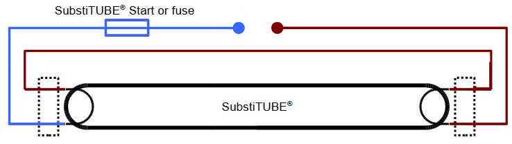 I am now making presumptions, but I presume that they have done it this way so both ends of the baton have a live and Nutral so you can put the tube in either way around. (You do not need the SubstiTUBE Starter as you already have an inline Fuse).