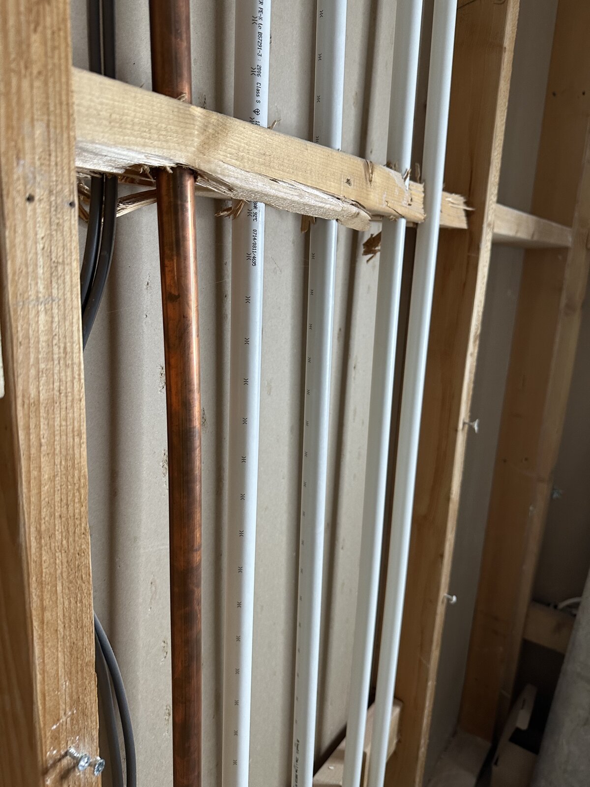 I was planning to attach wood where necessary for additional support, but this section has a lot of pipes, making it impossible to add any wood to drill into.