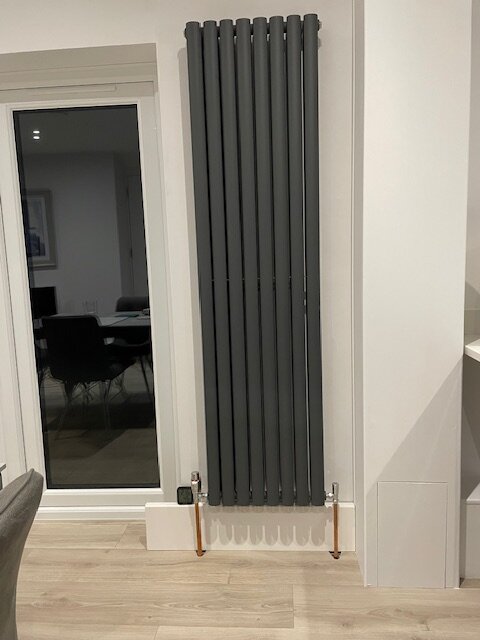 Updated old vented system to sealed system. Retained Valiant ecotech plus 424 boiler (24KW) and magnaclean filter. New Grundfos UPS3, Honeywell bypass, motorized valves for downstairs CH, upstairs CH and HW, Honeywell home wireless wall thermostats (one up one down), extended 22mm flow and return with localised 15mm feeding 5 vertical rads downstairs and 4 horisontal Stelrads plus towel rail upstairs. All have Drayton TRV4s. Pressure vessel in airing cupboard.