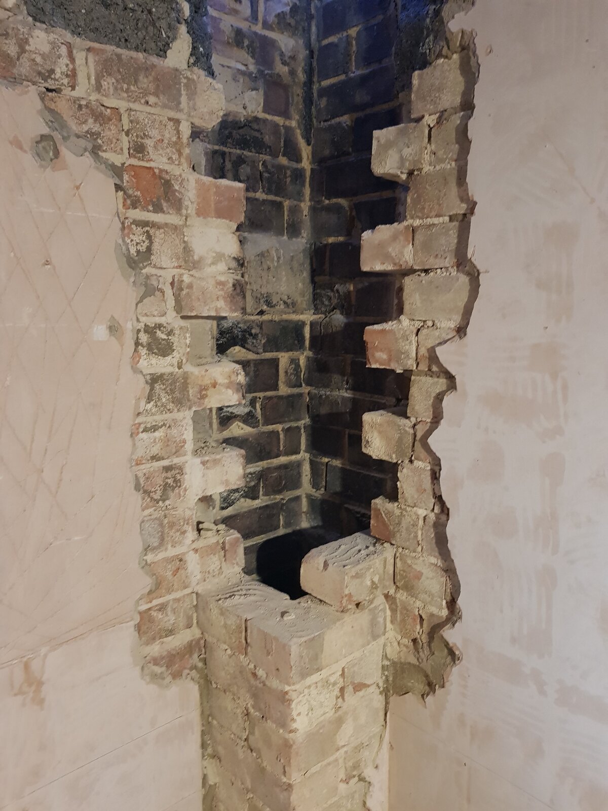 I'm removing my small chimney breast on a solis wall 9 inch as per attached photos. I left the long brick coming from the exterior face. What would be the best technique to tie it on the corner and make it stronger again?