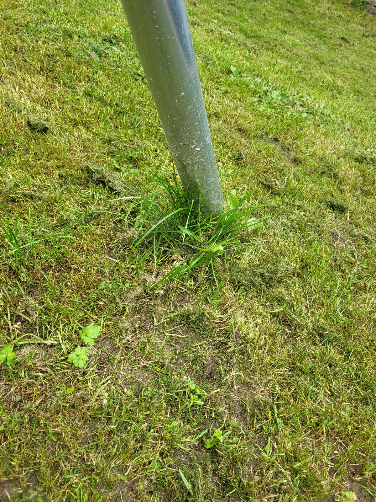 Please can someone give me advice on how to trim around the swing legs as the lawn mower didn't work on it and the strimmer just snapped when it hit the metal legs.