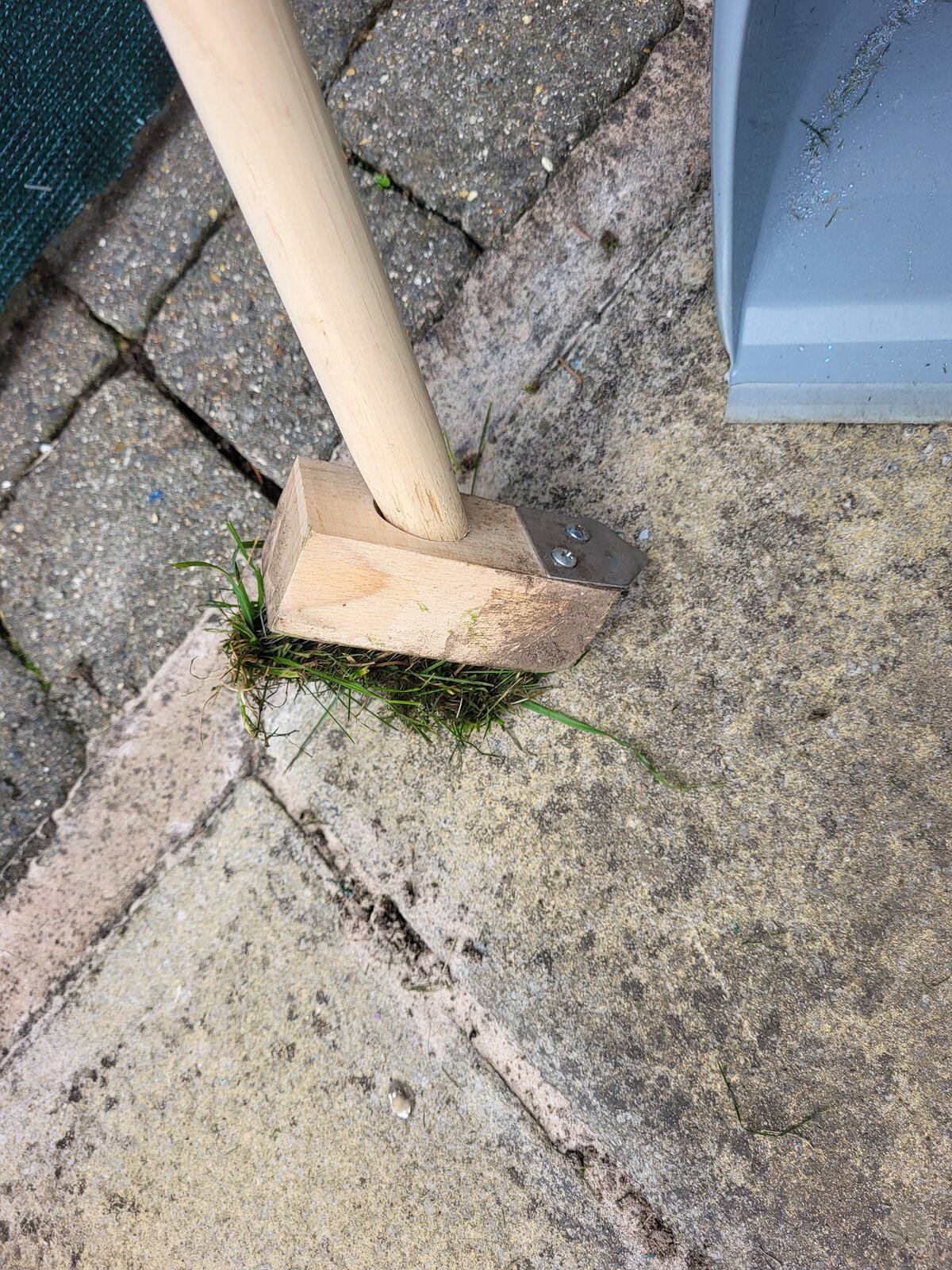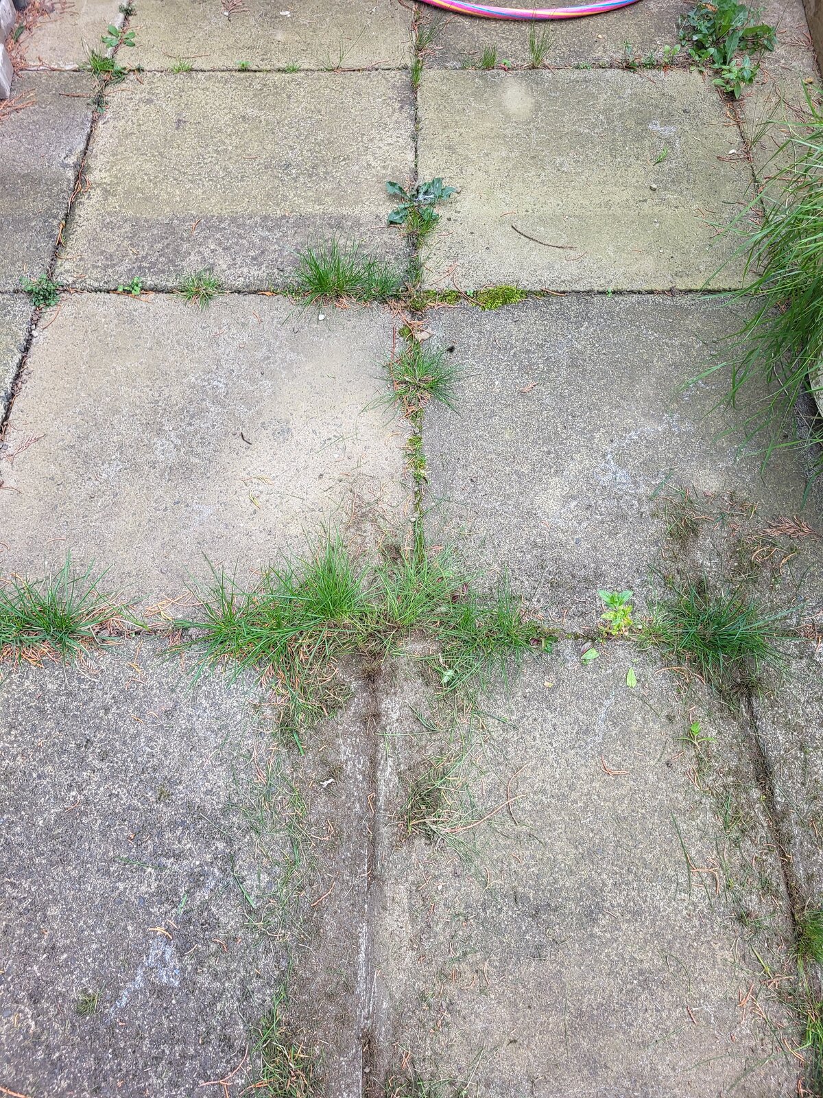 Also having trouble getting the weeds and grass out between the paving slabs that you can see in pictures as the weed rake didn't work as its too tough.