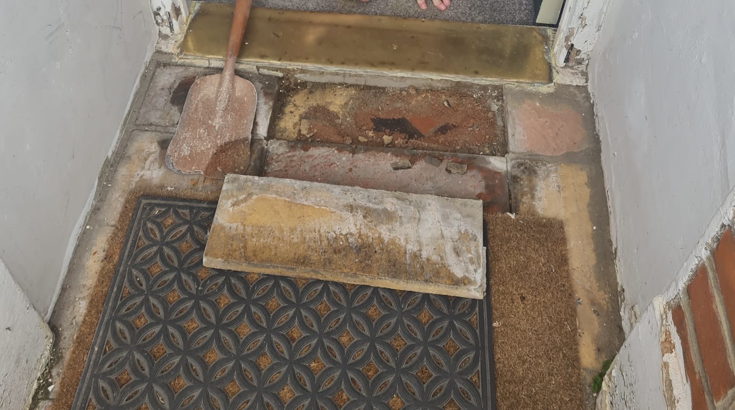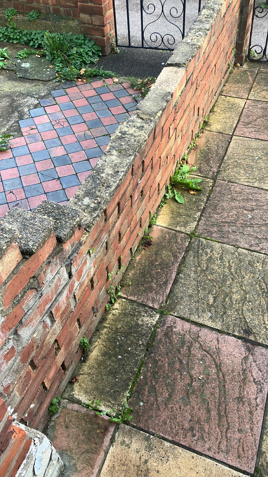 I’m currently trying to uncover my original pathway might is the one covered with paving slabs to the right, but underneath to the left is the black and red pathway. Currently there appears to be some hard/soft core under the paving slabs. Just wondering what the best way to do em this is without damaging the tiles themselves underneath/any other advice people might have.
