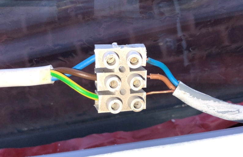 I cut the standard 3-pin plug off the cable running into the "brick" and connected it to the cable running into the lighting circuit.