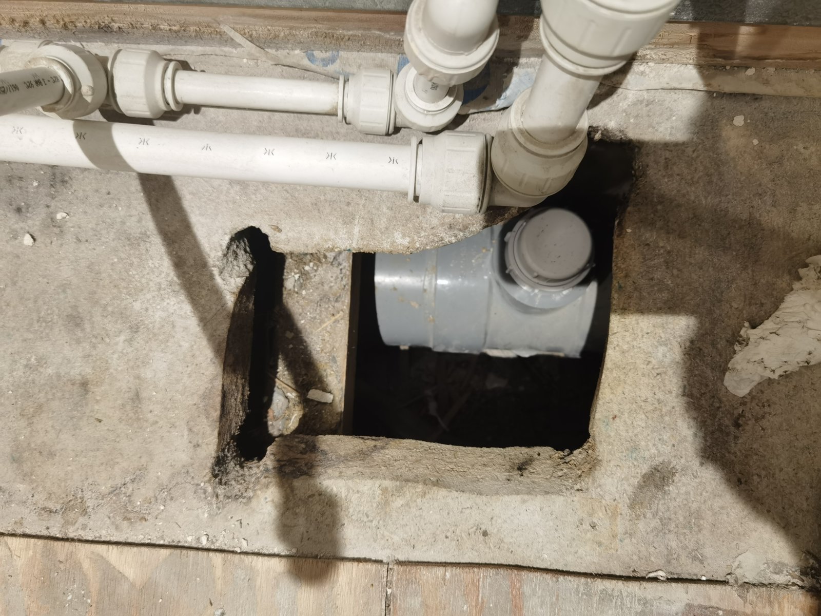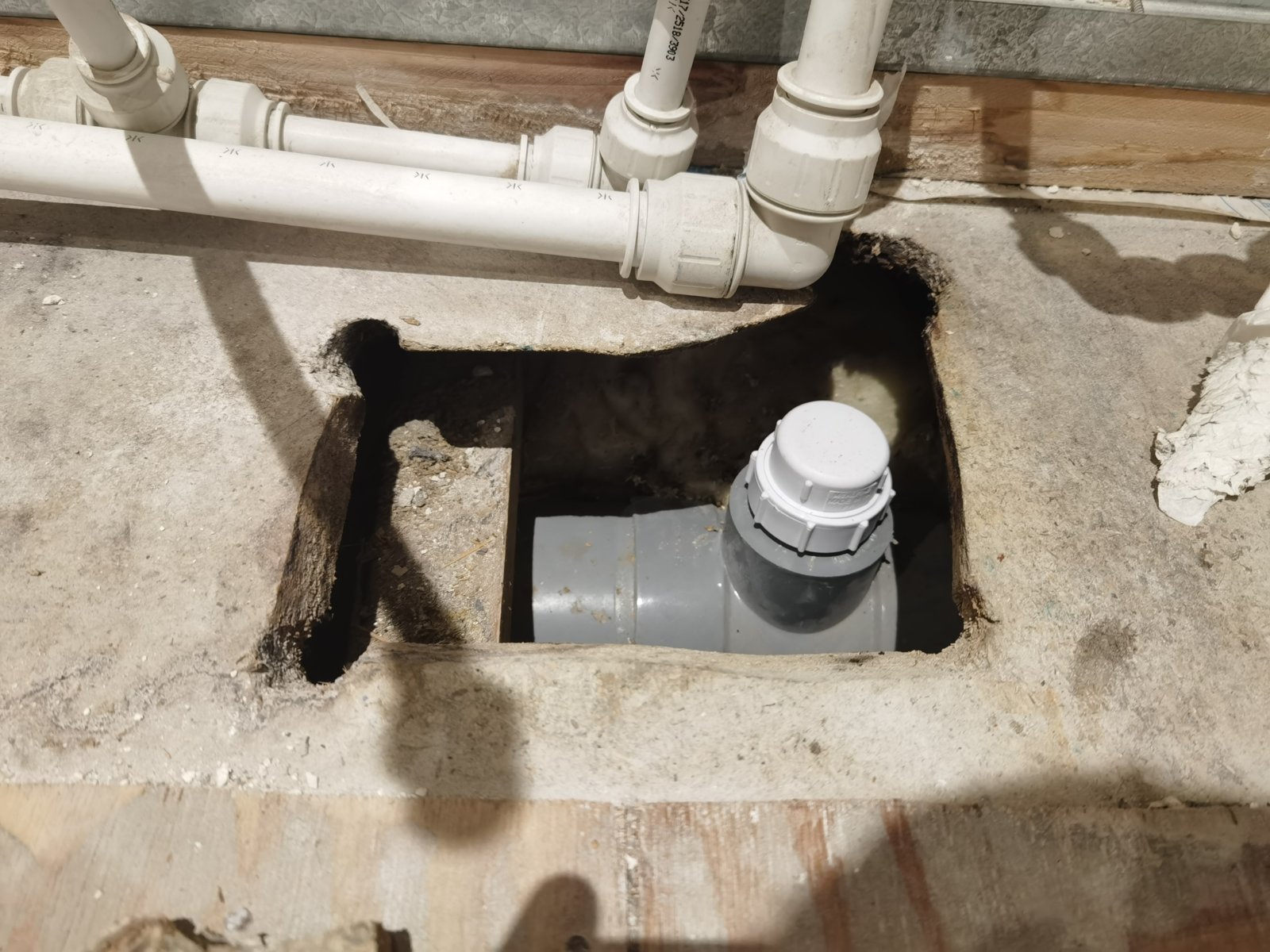 Looking for the best/easiest way to repair this floor. It's how the builders left it. Used to be a built in vanity unit concealing it. A basin waste pipe which I have now removed, entered here to connect in to the soil pipe. I just need to patch this up so I can eventually ply over then tile.