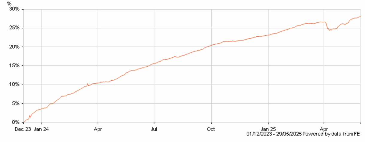 The "base" fund I've been quoting has a flattening curve. This is the past 18 months; the last 12 monbths is about 12%, but you would be taxed on it as CGT. The highest rate for that is 24%, which takes the 12 down to 9.12.