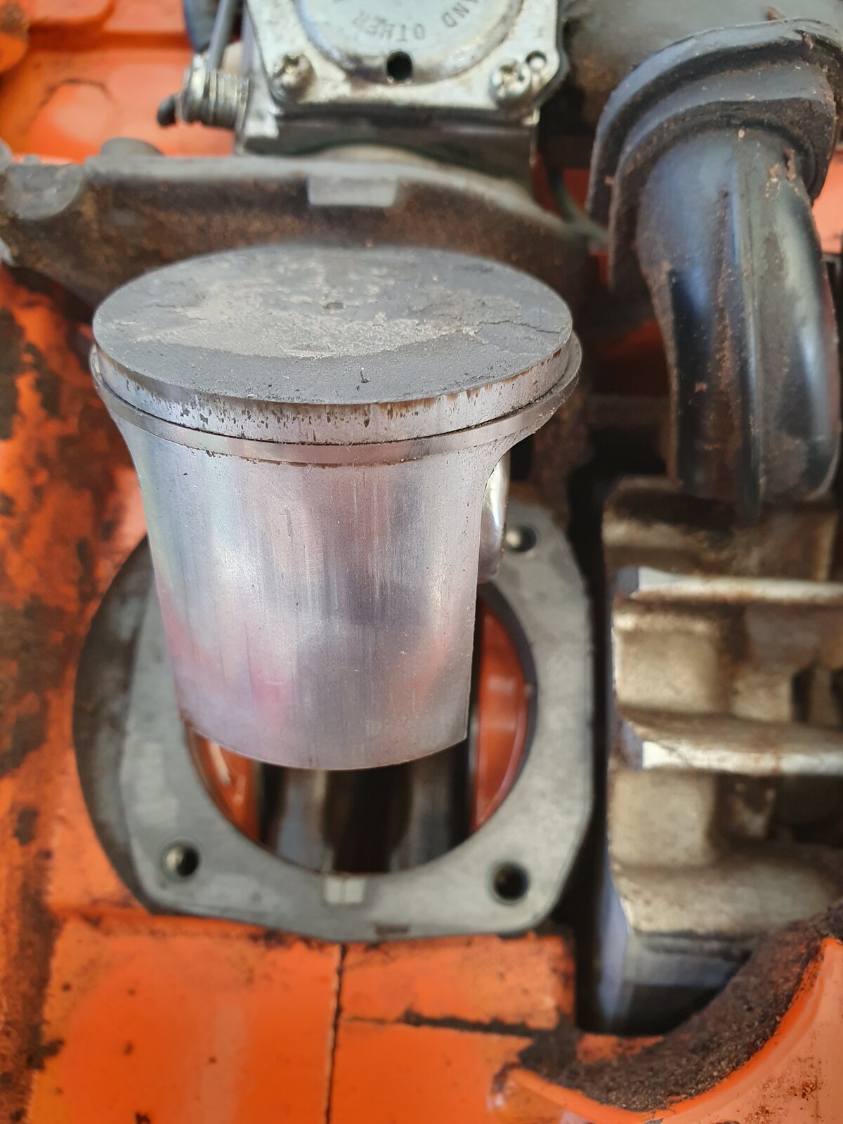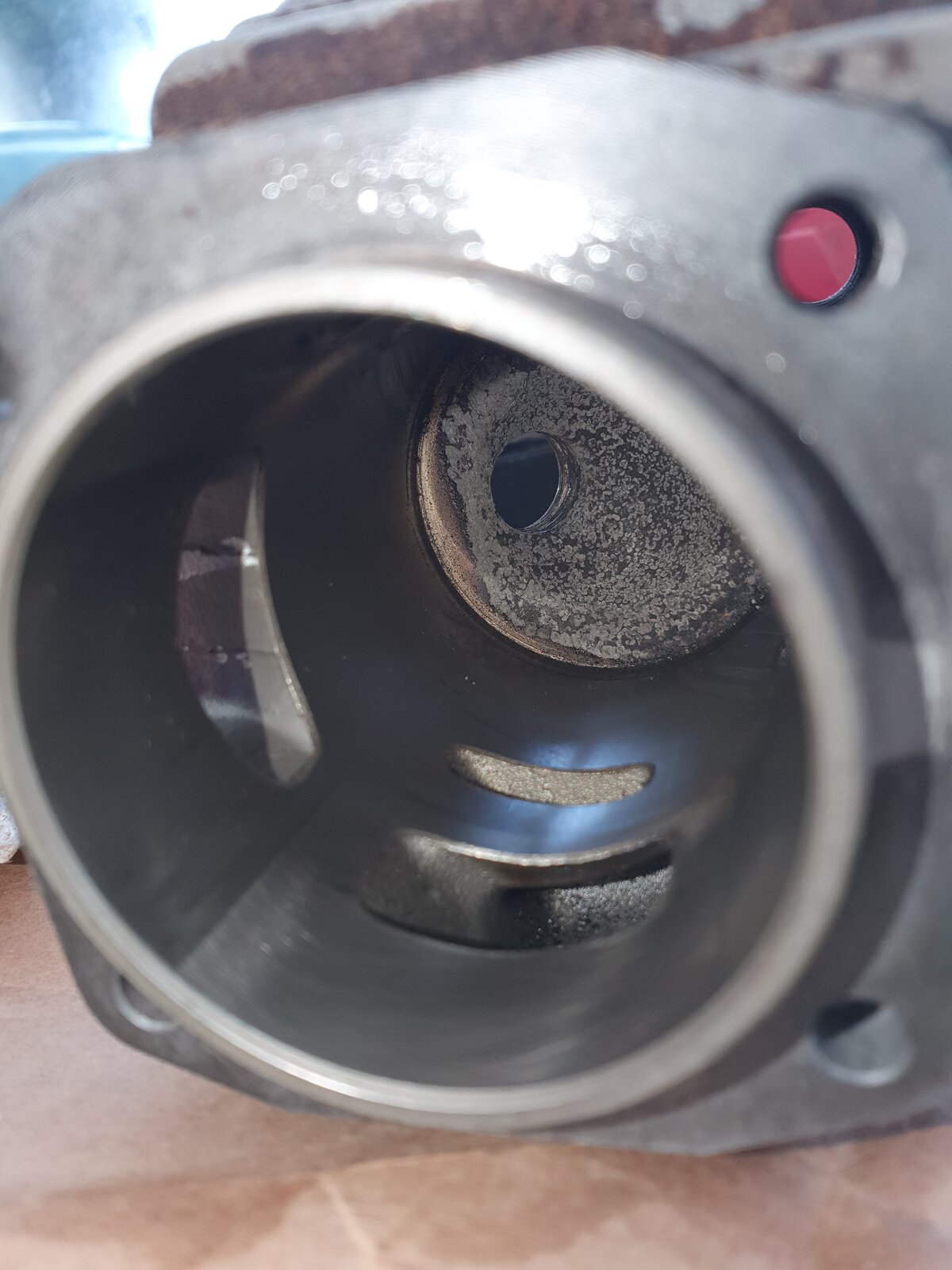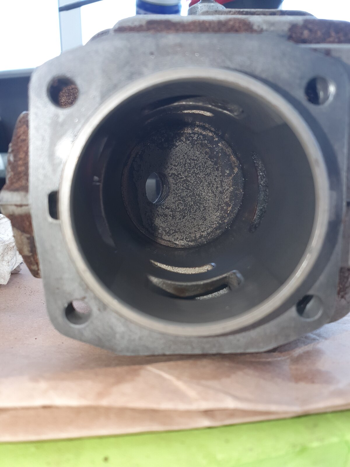 Before taking apart I checked compression and was 50psi. Decompression valve seems to close fine. Piston not scored through exhaust I the removed the head.