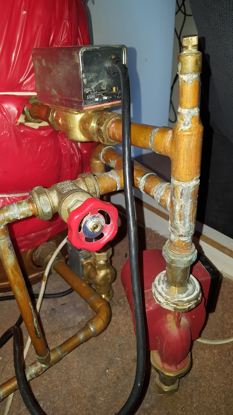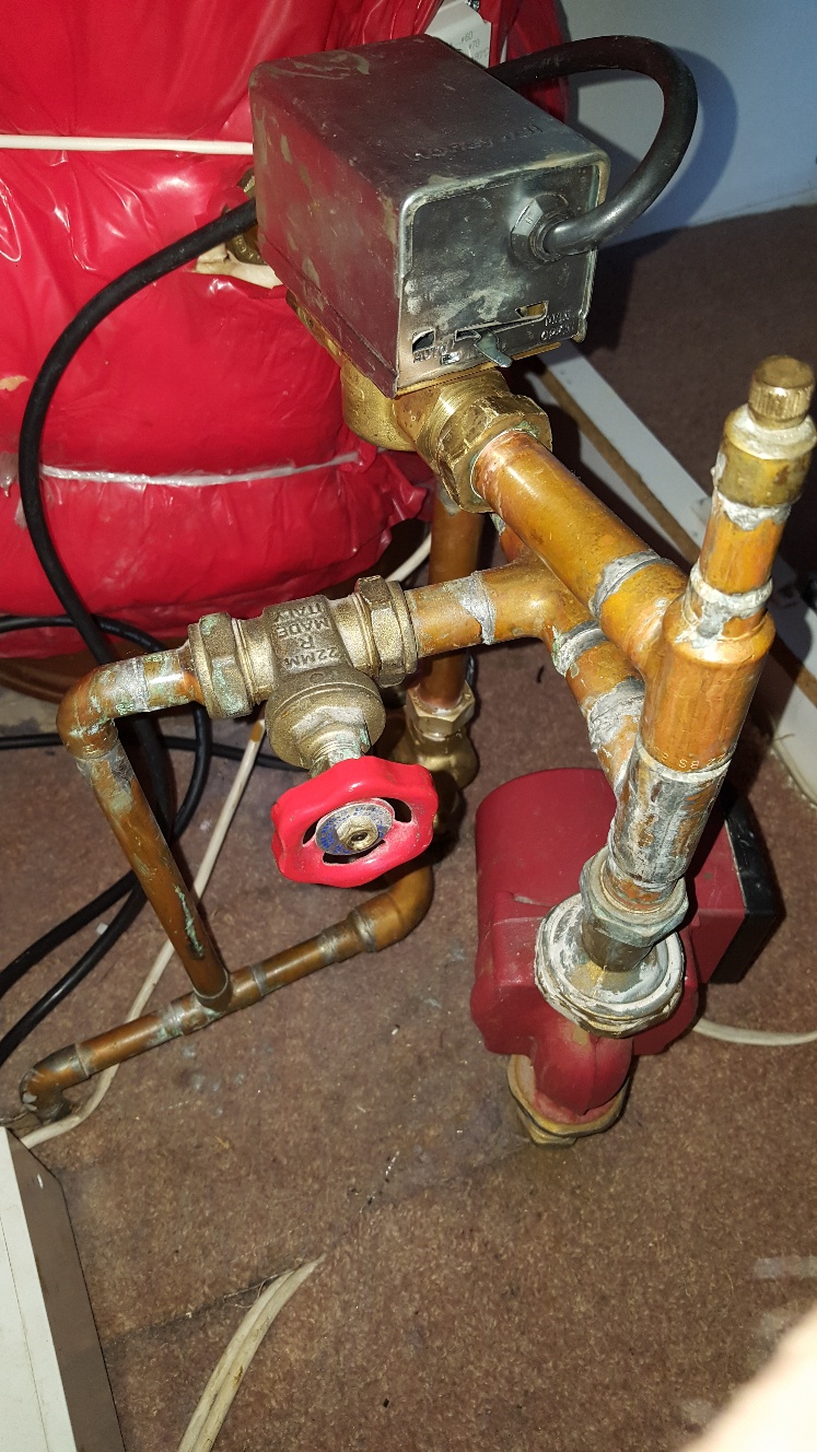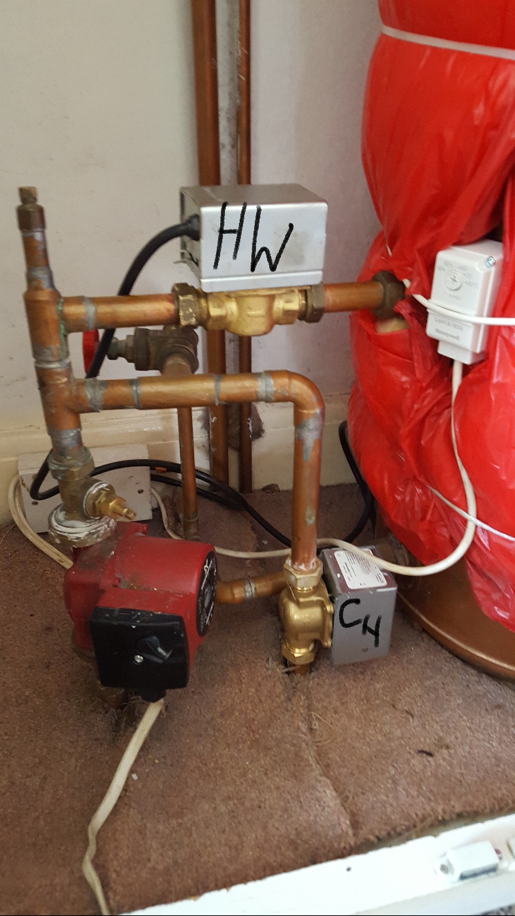 Radiators refilled with Sentinel X800 and switching the power to the heating system back on I tried the hot water first and pleasingly the HW zone valve did what it was designed to do which is rotate its lever and hit the microswitch to call for heat. Boiler fired up and started heating water pipe both sides of pump and HW zone valve but hot water in cylinder did not heat up after 20 minutes of being on. Pump and water in pipe making usual noises but I assume there is no flow for some reason.