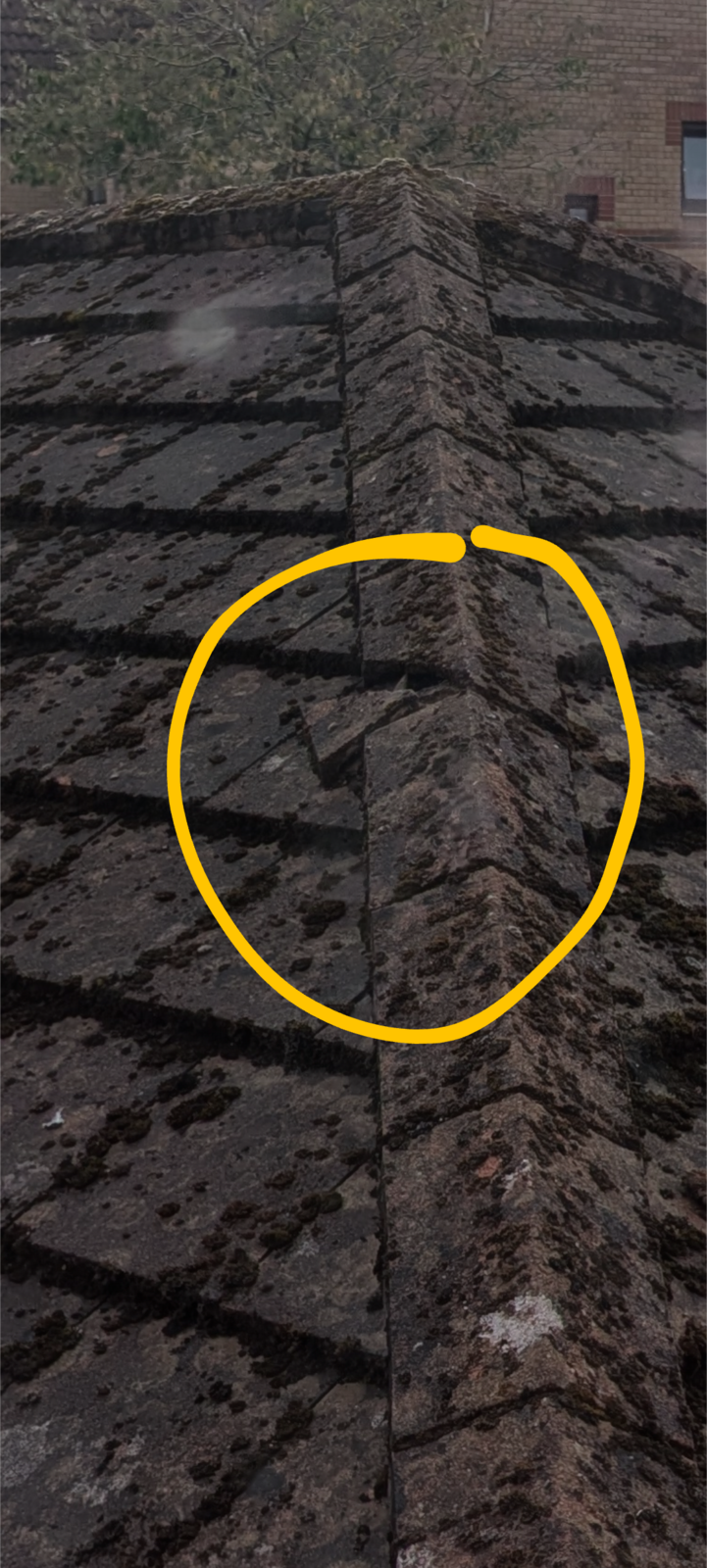 Moved in recently, noticed this in garage roof but it doesn't look like it's happened recently. I haven't seen any signs of leak inside the garage so not sure if this type of tile just sits in top of another and therefore is mainly cosmetic or if it's something I do need to resolve ASAP. Cheers for any help