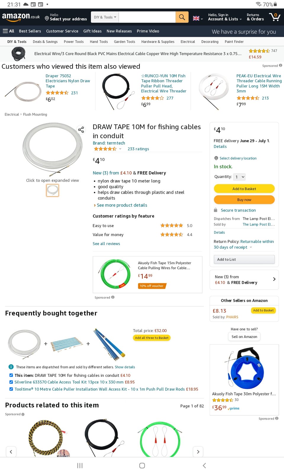 I didn't realise the inner face is not smooth and where the conduit bends at a right angle to go through the wall I can't get a cable or pull cable to get round the corner.