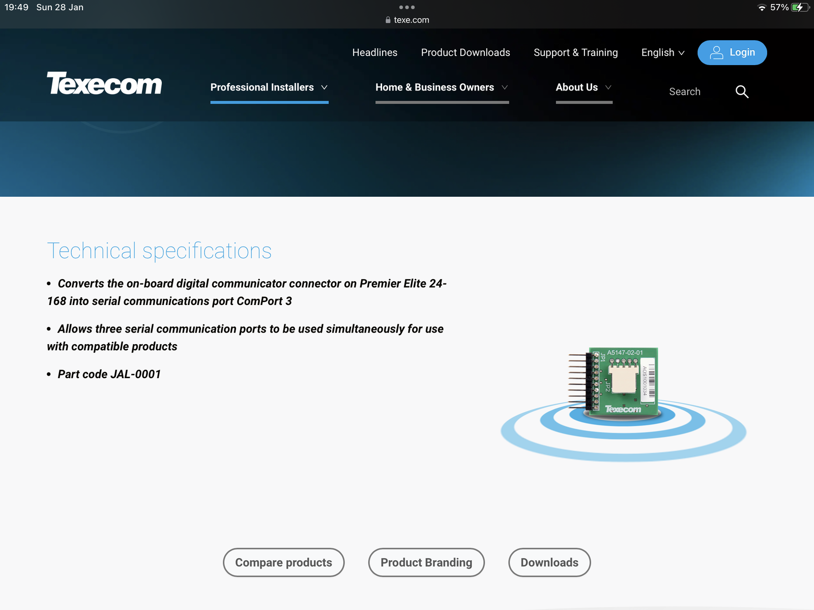 Ah - right - ive not got that board...ill have to get one on order...strangely i loose connection over ip to the board if i mess with comport1?? weird - i did set it to "nothing installed" but now ive lost connection over ip...? - the module is working though as i can get to its landing page..the smartcom module is missing its front cover so that tamper switch is open..will that matter...ive mailed texecom to see if i can buy a replacement box for it..