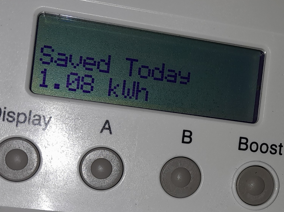 which shows 1.08 kWh saved today, I hope latter this will be the same, at 19:27 it was looking good, still shows 1.08 kWh. Crossing fingers this has worked.