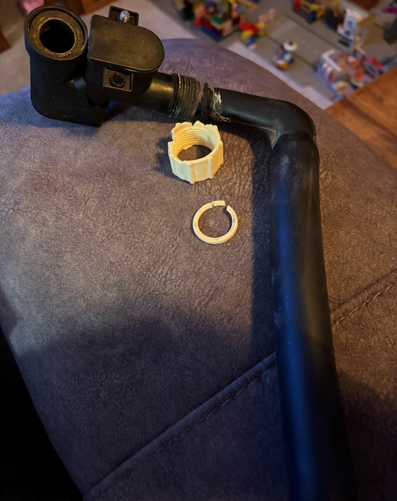 He fitted a new trap and rubber hose, the old S-trap was quite gunked up with small black metal parts (apparantly)
