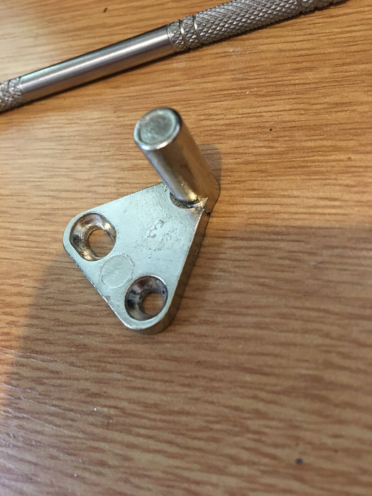 We have a storage cupboard and the lock has been forced - there's a metal part which sticks down from the top part of the cupboard, and it has broken. Would like to find a replacement but I'm not sure how (or even what these little bits are called!).