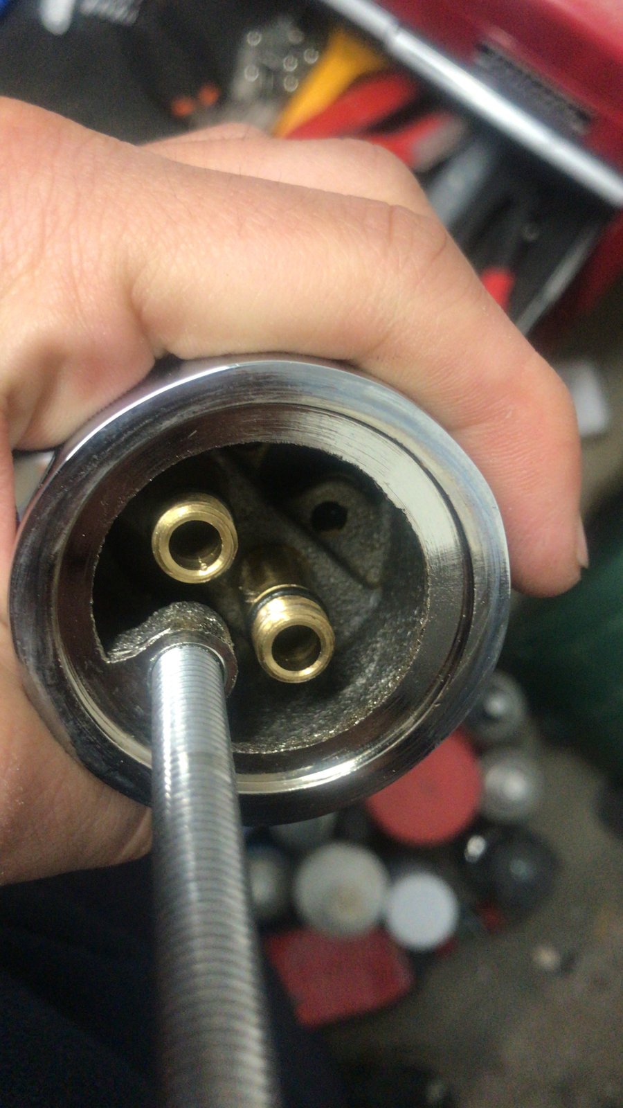 Bought a ex display tap and sink the other day and I was wondering what Flexi pipe I need here. I want a compression fitting the other end but what goes at this end. Pretty sure its 3/8".