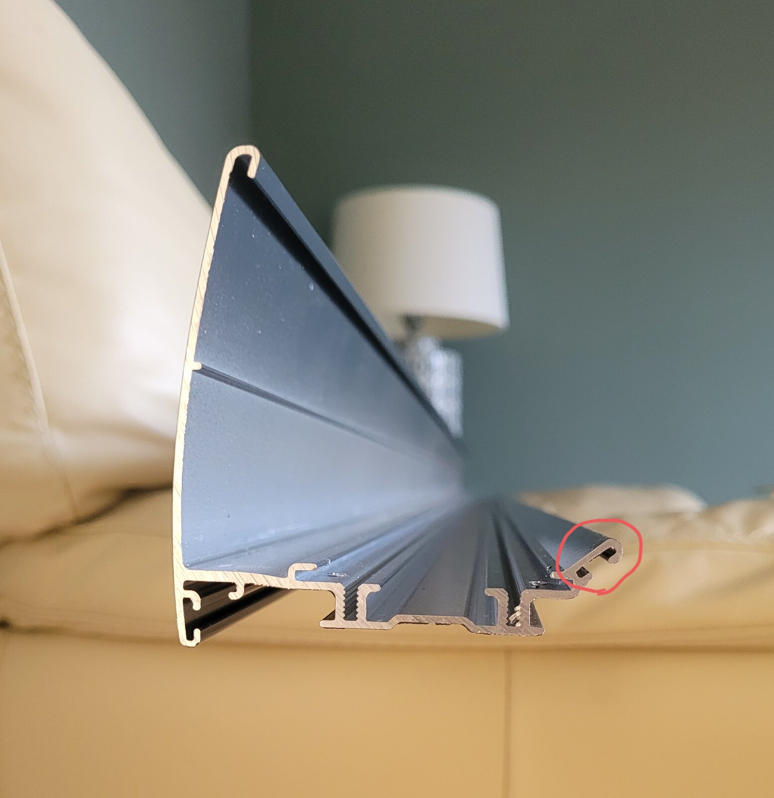 I've got this roller blind cassette from a botched order that I want to repurpose as a cover for the mechanism above a sliding door. I need to remove, or bend back, the circled bit that sits proud. Any ideas how I could do that? It's aluminium I think so should be pretty soft, though it doesn't bend by hand.