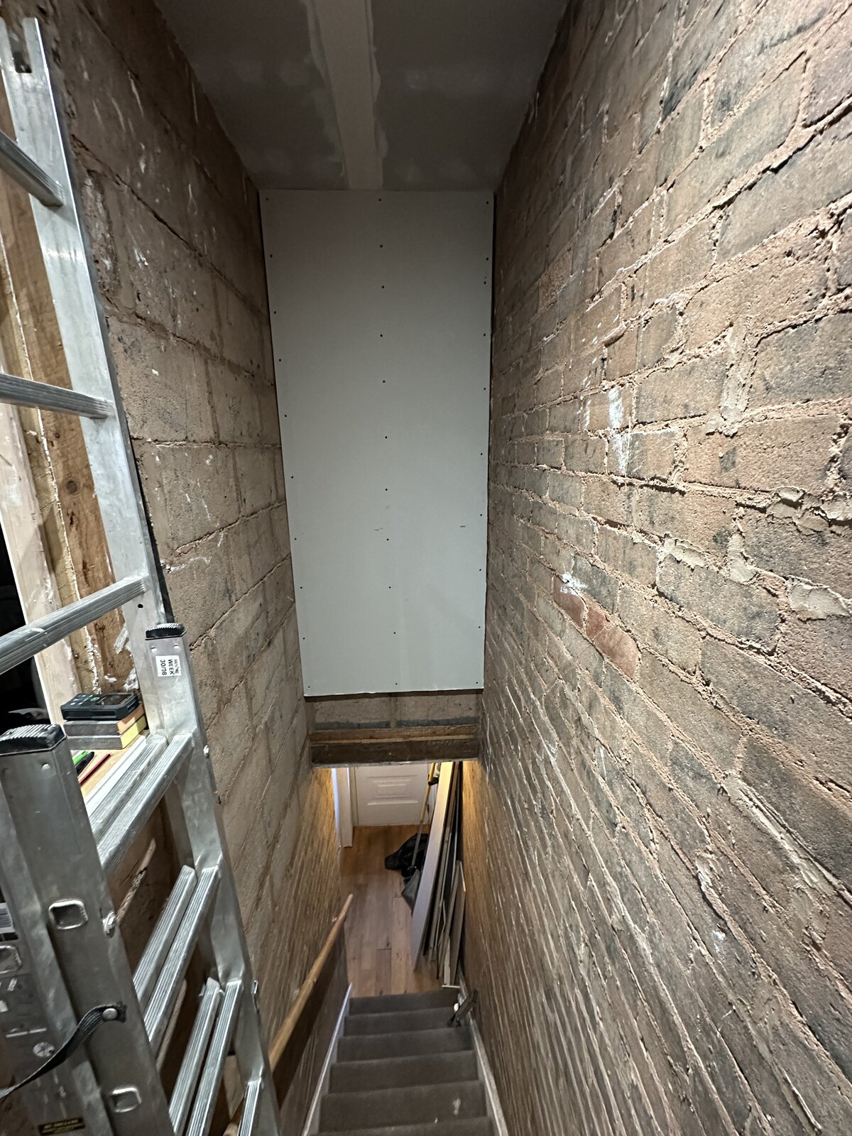 Finally getting round to boarding the walls my stairway this weekend. Already done the ceiling and the easier walls, to get into the swing of it, but it occurred to me that, despite me being quite tall, even if I could lift the board at full stretch above my head, it's still not enough, and as I'm using adhesive, I don't want to be struggling to get it in place, against the clock. Can't do it on ladders, as the ladder would be in the way, and I'm doing this on my own.