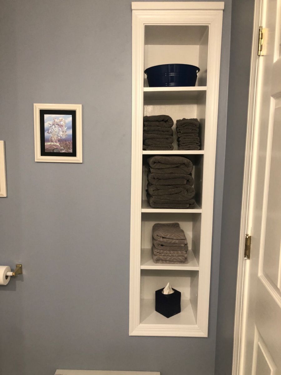 I DIY'd our bathroom last year. The one thing I didn't do was find a space to fit a towel holder.