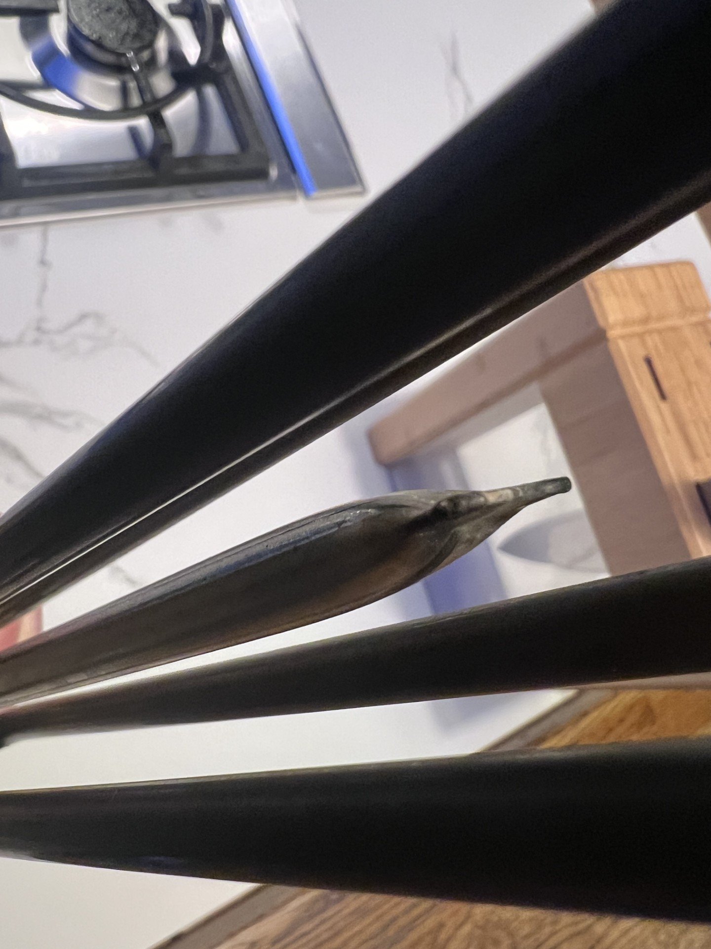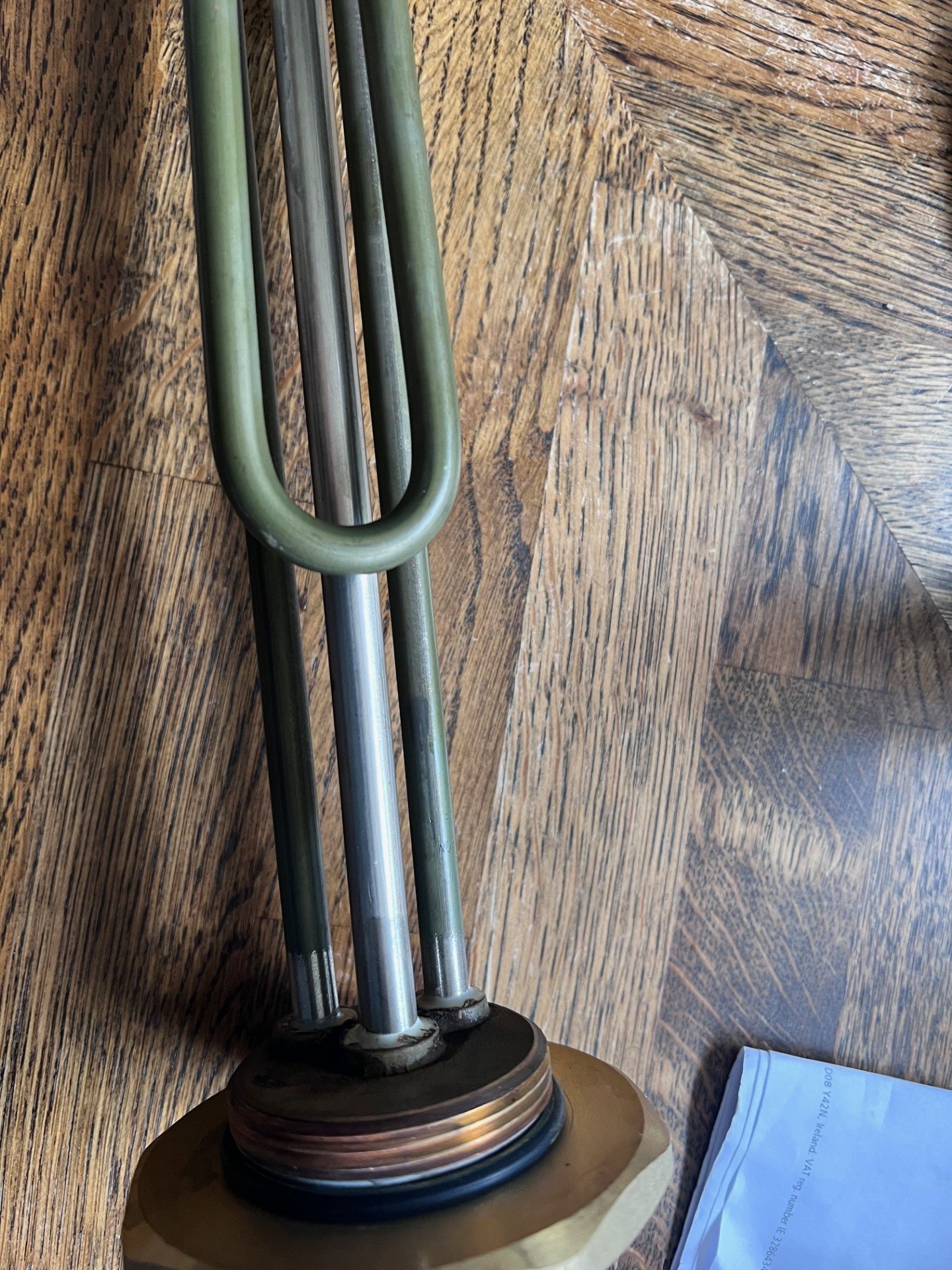 Thanks, can you see signs of corrosion on the end of the tube/pocket where its crimped, its difficult to see in photo 3. Is that tube touching any part of the (heating) element?.